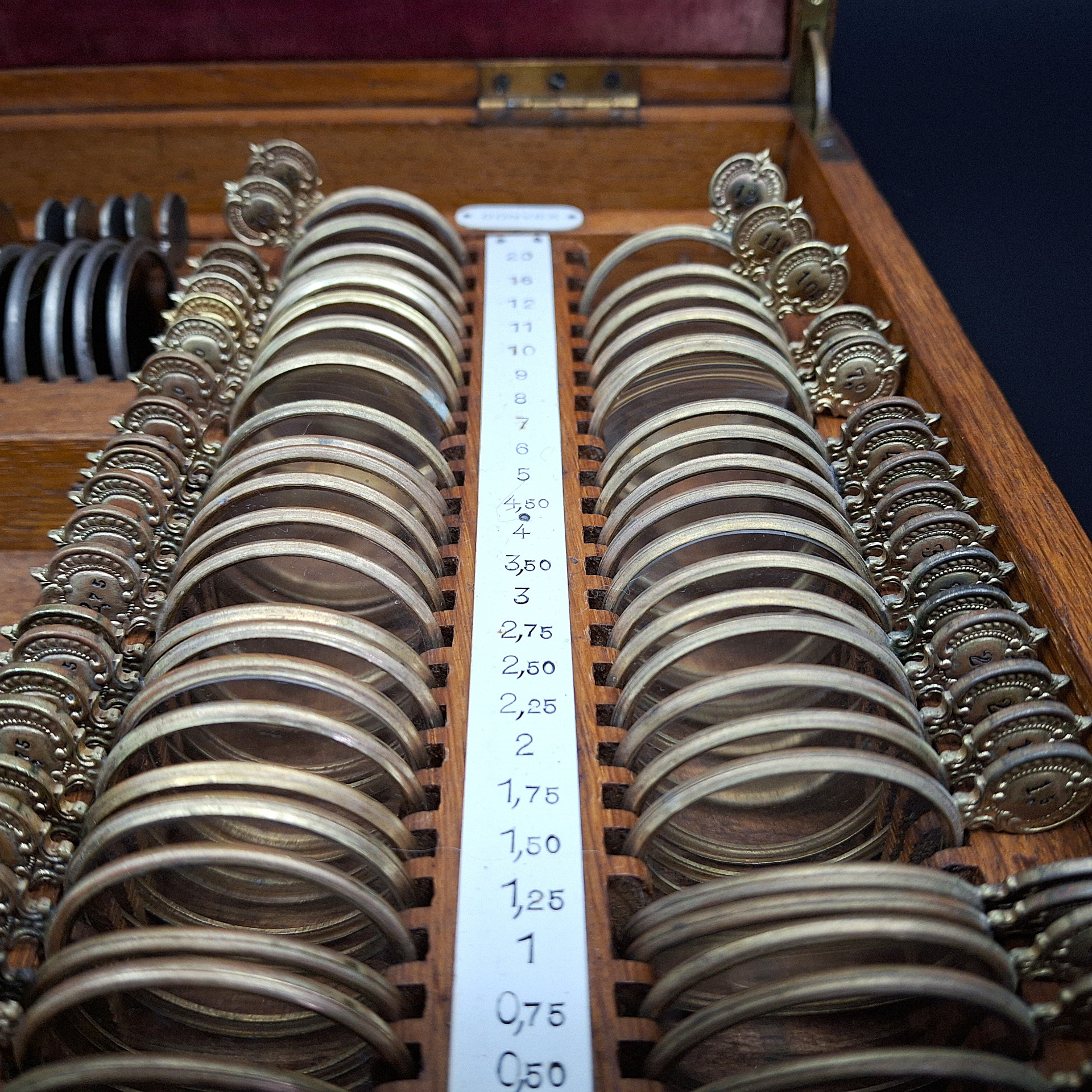 Antique optician's trial lens set, circa 1900.