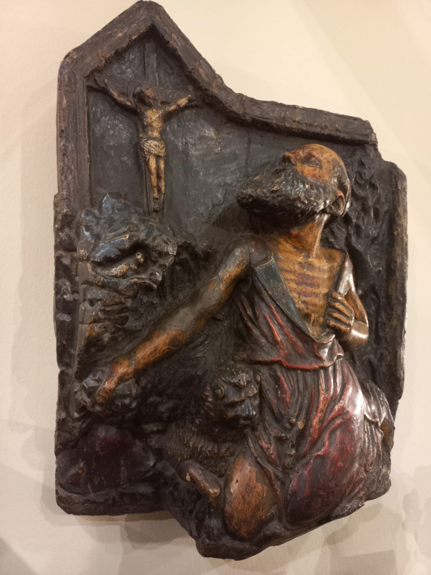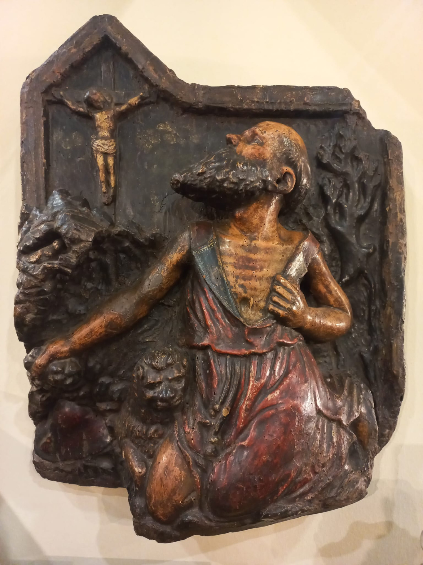 San Girolamo penitente, altorilievo in legno laccato, scultura lombarda della fine del XV secolo/inizio XVI secolo, dimensioni massime 76x60 cm, spessore massimo circa 19 cm. http://www.oldpaintingsonline.com