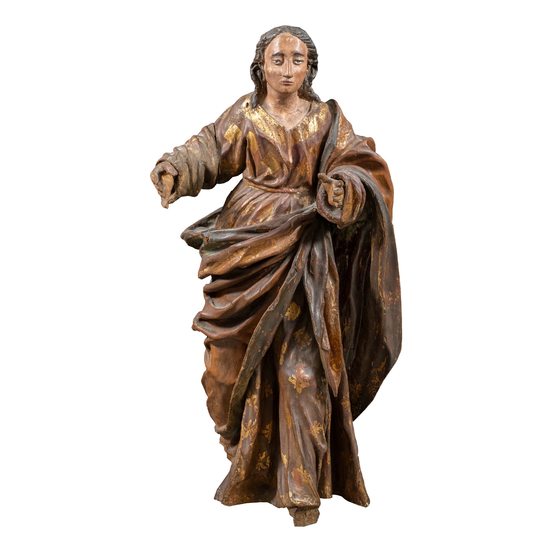 Carved and painted wooden sculpture - Figure of a saint - Italy, 17th-18th century.
