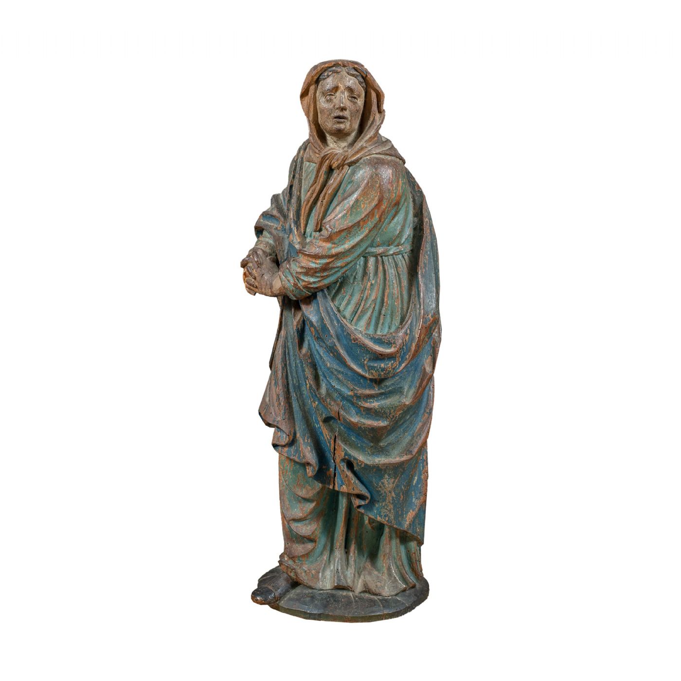 Carved and painted wooden sculpture - Praying Madonna - Italy, 17th-18th century.