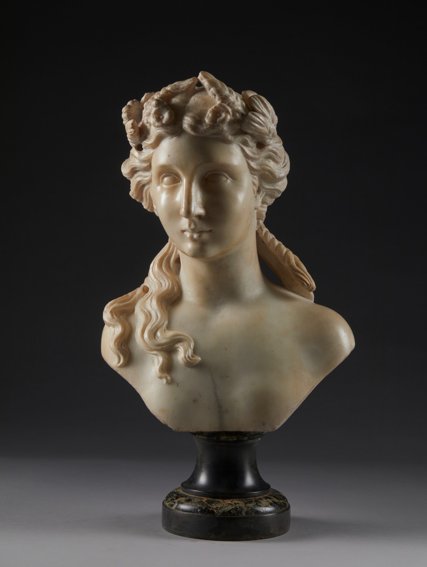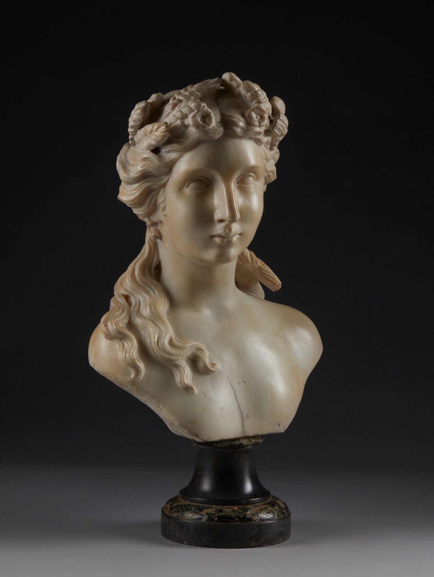 Marble bust of Ceres, Roman goddess of earth and fertility. White marble sculpture from the 17th century.