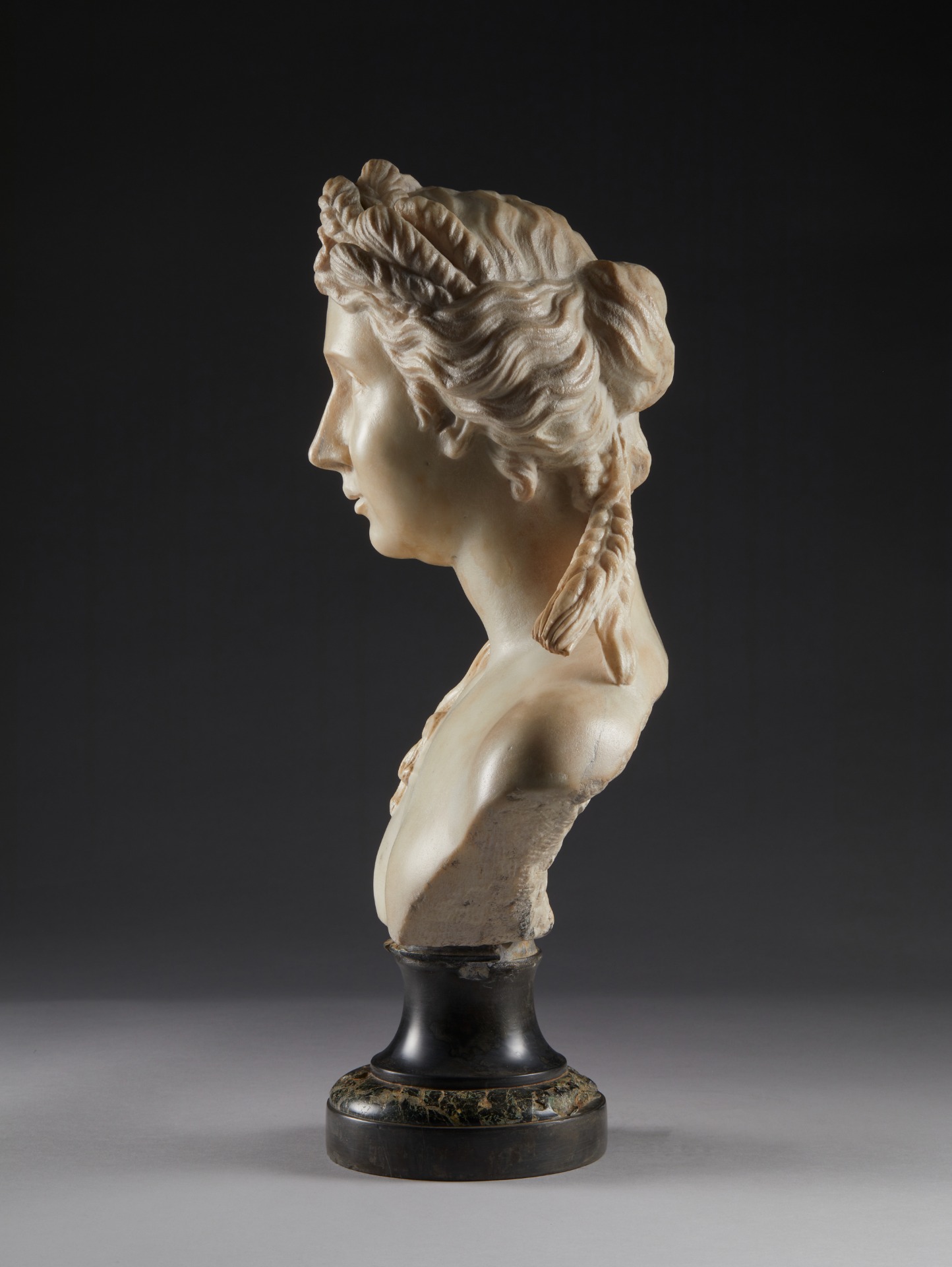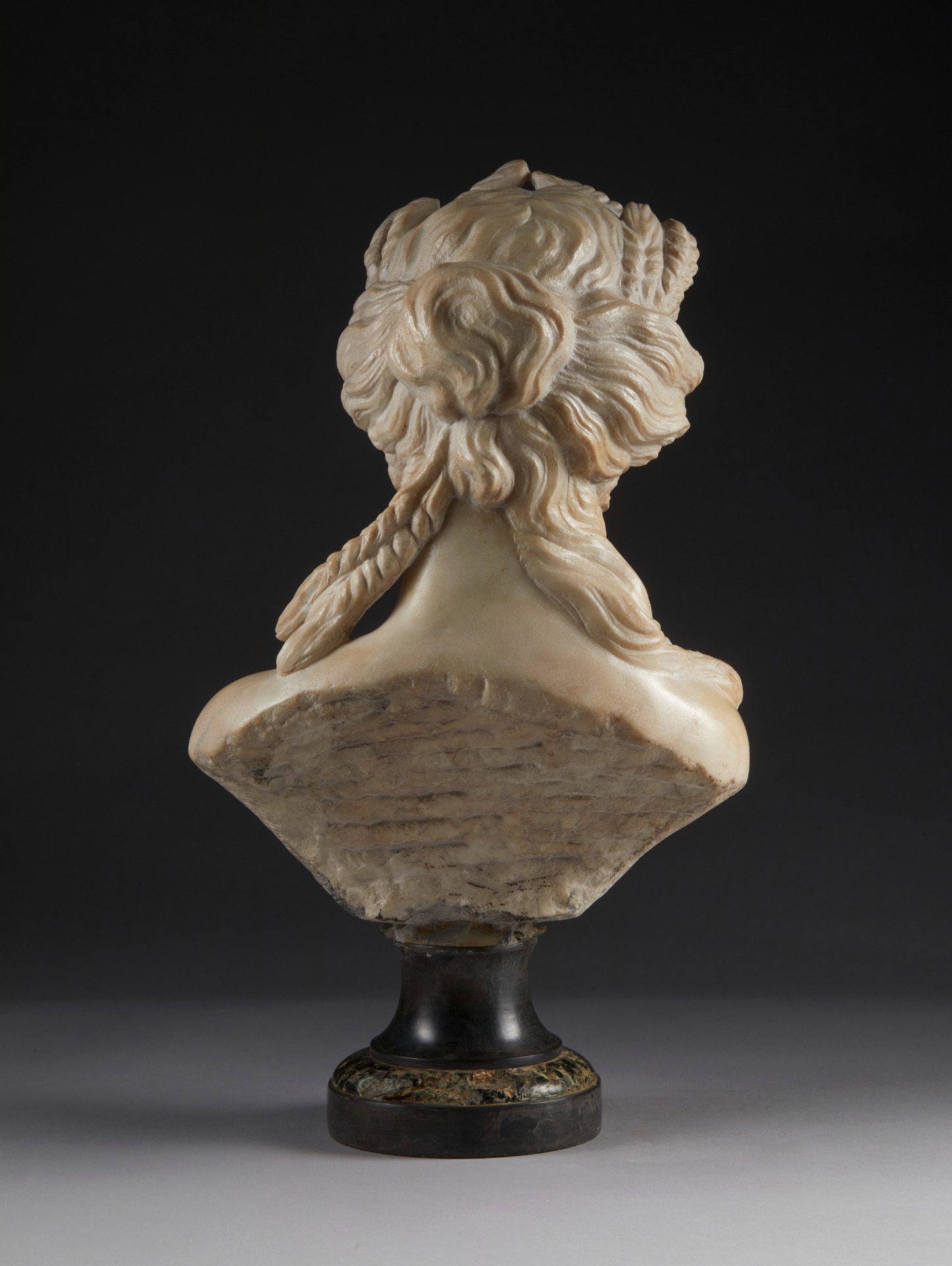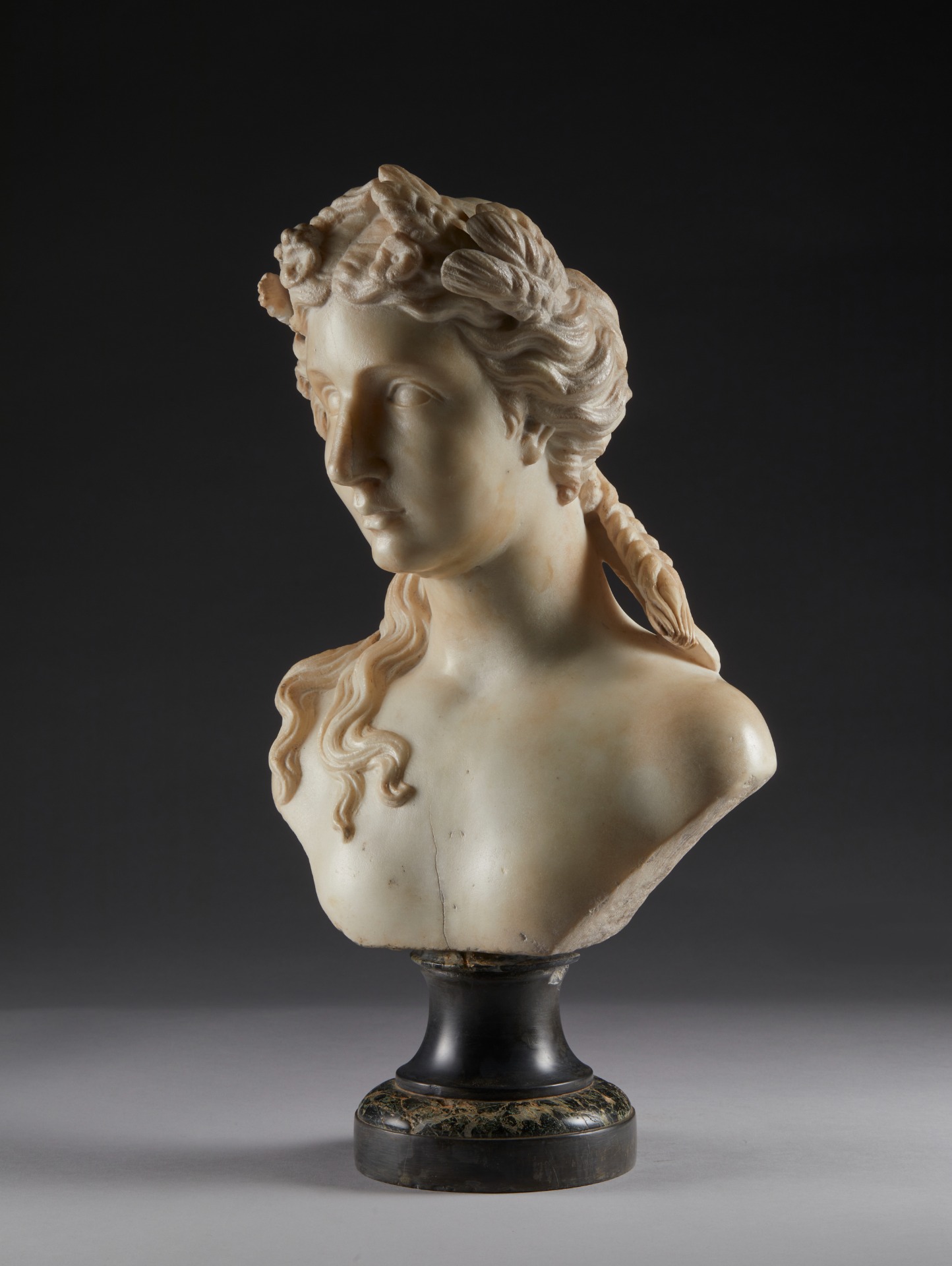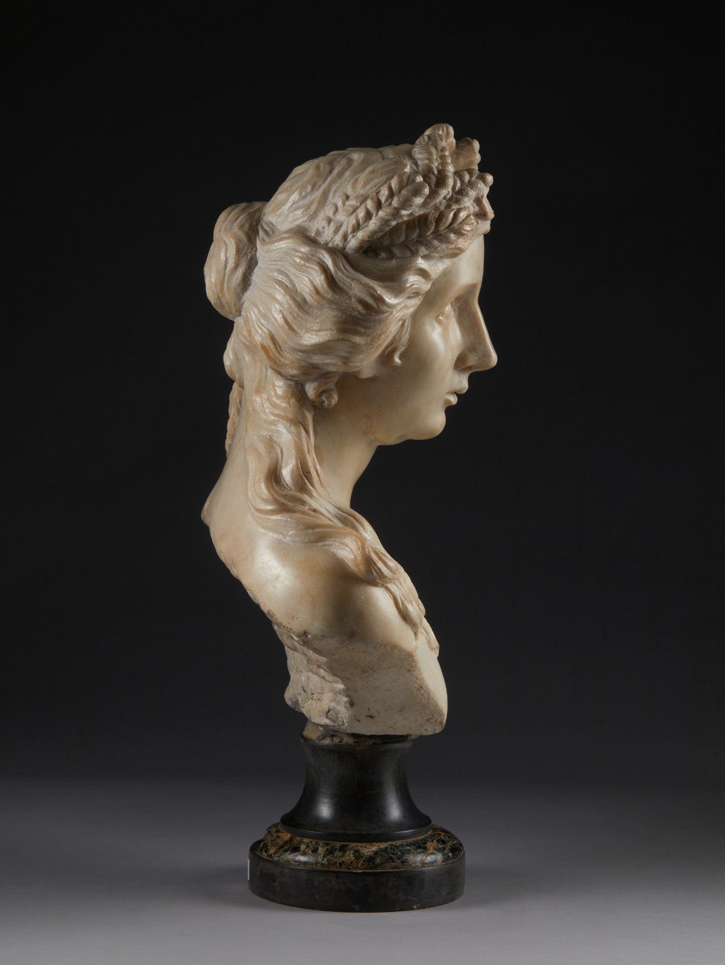 Marble bust of Ceres, Roman goddess of earth and fertility. White marble sculpture from the 17th century.