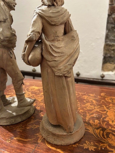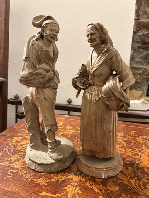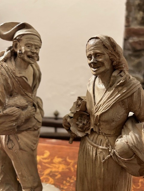 Nativity scene figures Signed Bongiovanni Vaccaro Caltagirone Representing 2 farmers In terracotta