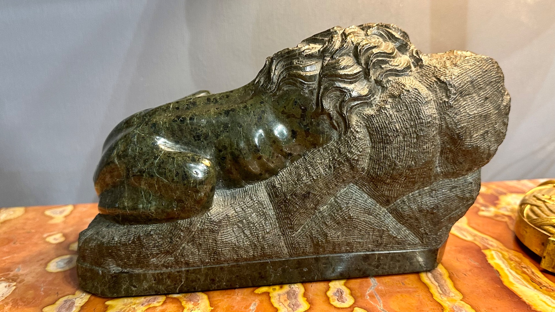 From Bertel Thorvaldsen: a finely sculpted serpentine marble Lion of Lucerne. In 1818-1819, the famous Danish sculptor Bertel Thorvaldsen (1770-1844) made a model for a monument to the Swiss Guards who had fought in Paris in defense of King Louis XVI during the storming of the Tuileries by revolutionary forces on August 10, 1792.