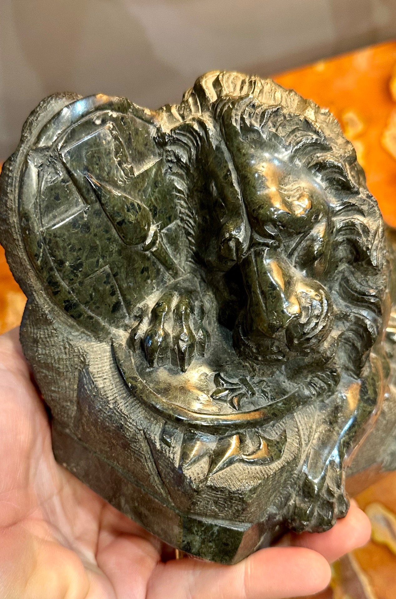 GRAND TOUR MARLE SCULPTURE OF THE LION OF LUCERNE - 19th century. From Bertel Thorvaldsen: a finely sculpted serpentine marble Lion of Lucerne. In 1818-1819, the famous Danish sculptor Bertel Thorvaldsen (1770-1844) made a model for a monument to the Swiss Guards who had fought in Paris in defense of King Louis XVI during the storming of the Tuileries by revolutionary forces on August 10, 1792. The monument, the Dying Lion (the Lion of Lucerne), was eventually carved in colossal dimensions, following Thorvaldsen's model, directly into the rock face of the Glacier Garden in Lucerne, where it was inaugurated in 1821. Dating back to the last quarter of the 19th century, our serpentine model is a typical souvenir of a Grand Tour in Italy and Switzerland. Thorvaldsen worked extensively in Italy, where he was considered by Grand Tour travelers to be the most important sculptor of the Neoclassical and early Romantic period, along with the Italian sculptor Antonio Canova. Origin: Italy Period: last quarter of the 19th century Measurements: cm. 23.5 x 11.5 - height cm. 13 Item accompanied by a certificate of authenticity. This item, like all our objects, is sold accompanied by a photographic certificate of authenticity and lawful origin. This document identifies the item, adding more value to the item. We handle transport and personally organize the packing and shipping of works of art worldwide.             ?? Antichità DELMONTE ?? https://www.instagram.com/delmonteantichita/ CONTACTS: FOR ANY ADDITIONAL INFORMATION, PLEASE DO NOT HESITATE TO CONTACT ME! Cell. Anna 338 4989679 EMAIL: annadelmonteantico@libero.it