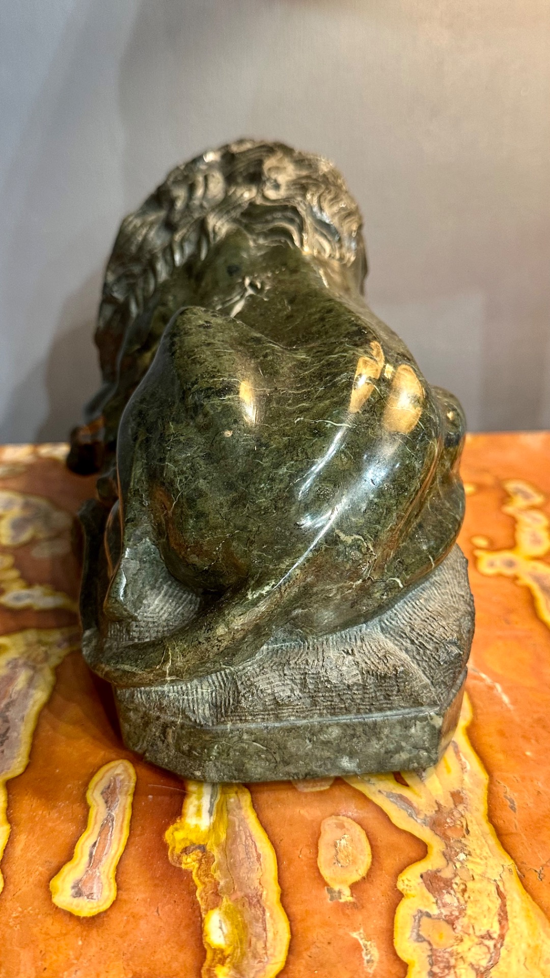 GRAND TOUR MARLE SCULPTURE OF THE LION OF LUCERNE - 19th century. From Bertel Thorvaldsen: a finely sculpted serpentine marble Lion of Lucerne. In 1818-1819, the famous Danish sculptor Bertel Thorvaldsen (1770-1844) made a model for a monument to the Swiss Guards who had fought in Paris in...