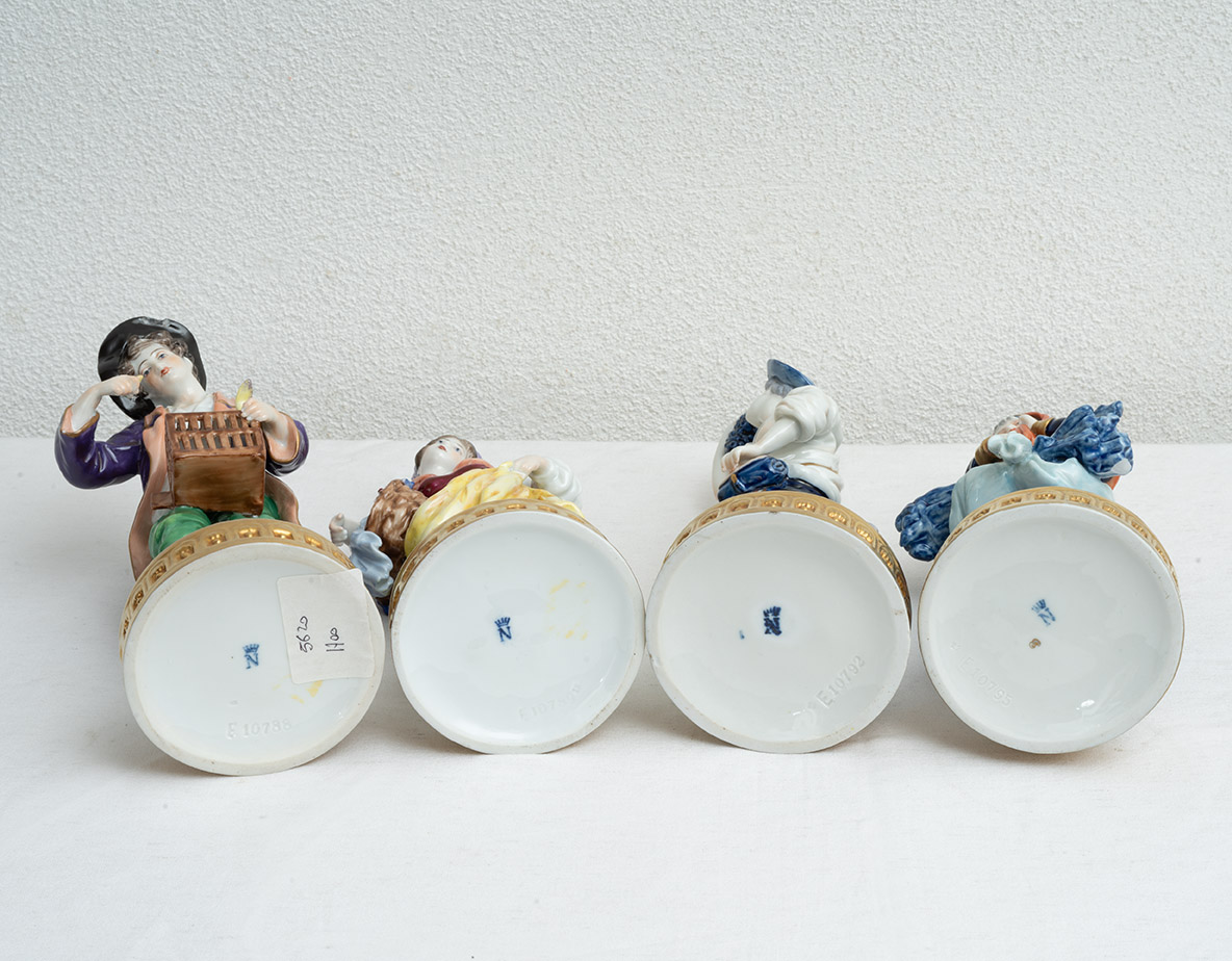 Description: Group of four antique polychrome Capodimonte porcelain sculptures depicting the four seasons. Naples, 19th century.