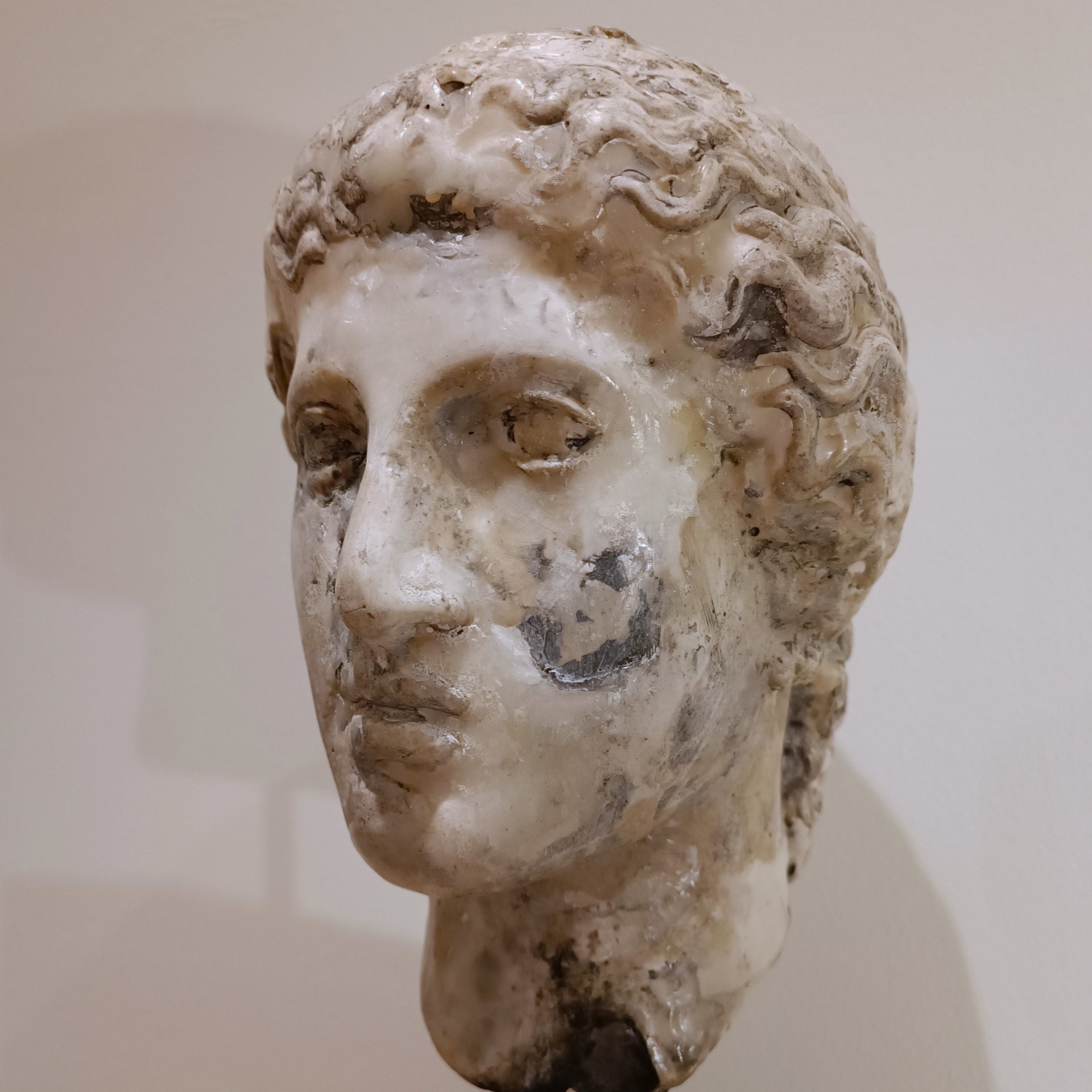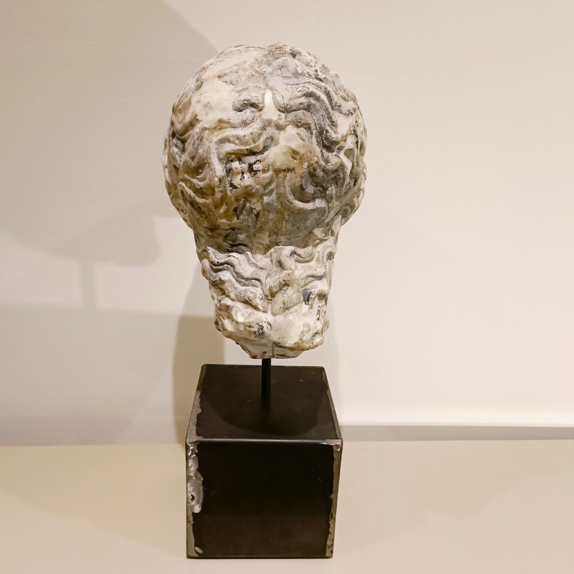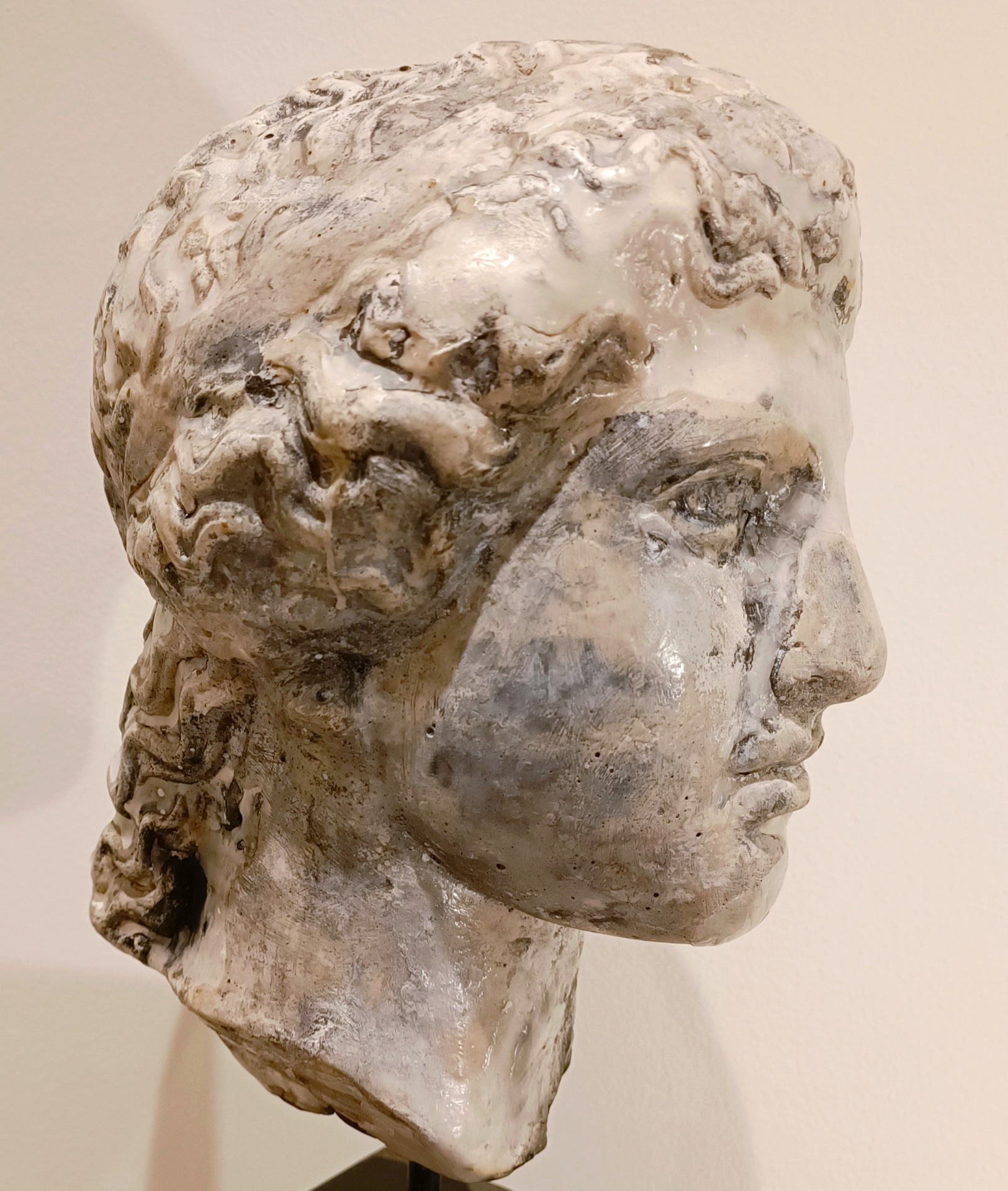 A work of rare beauty and academic charm: a wax sculpture from the early 20th century depicting the head of Hera, the majestic queen of Olympus in Greek mythology. Originating from the warehouses of a French academic school, this creation is a refined example of formative art and classical study. The work, in excellent general condition, measures 27x25x20 cm and rests on a 50 cm base, which enhances its grandeur and aesthetic balance.