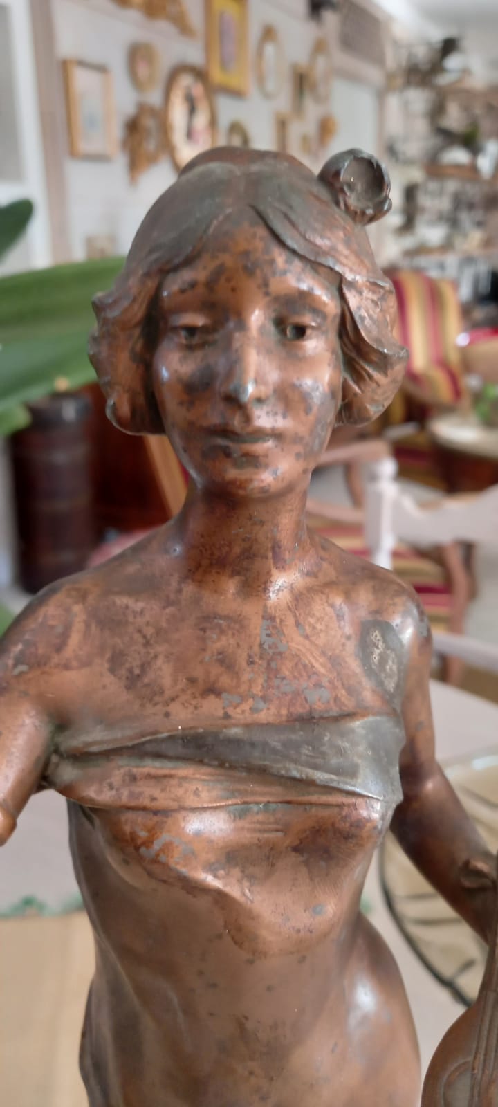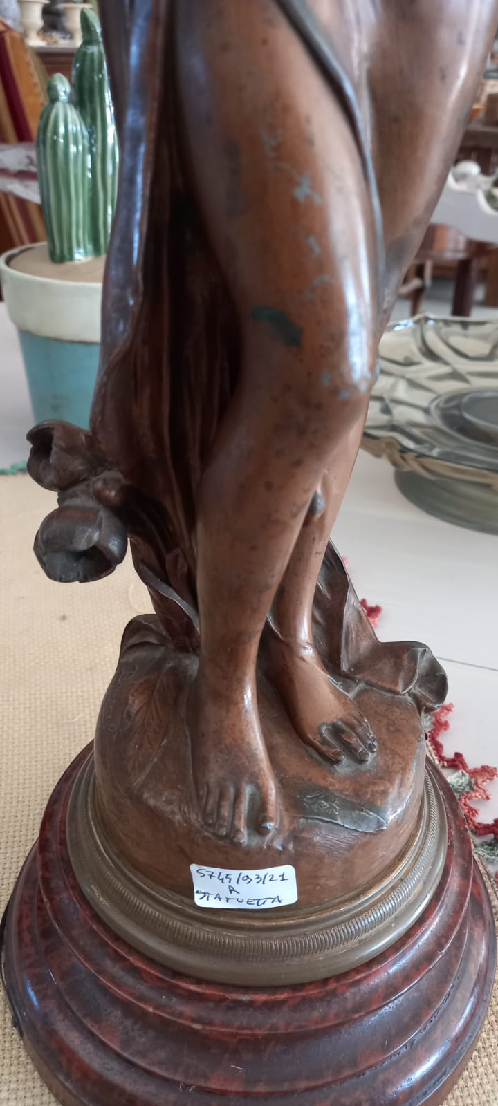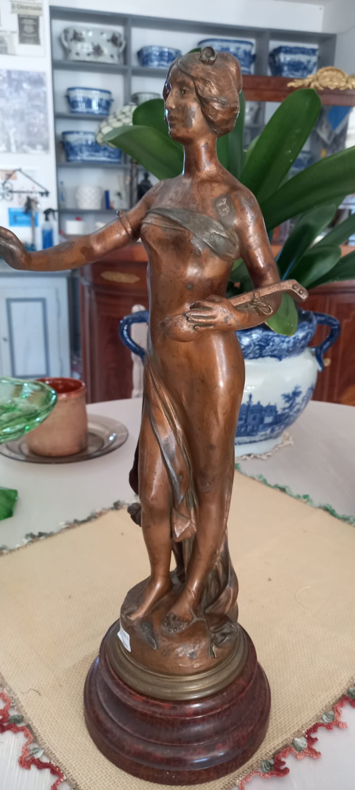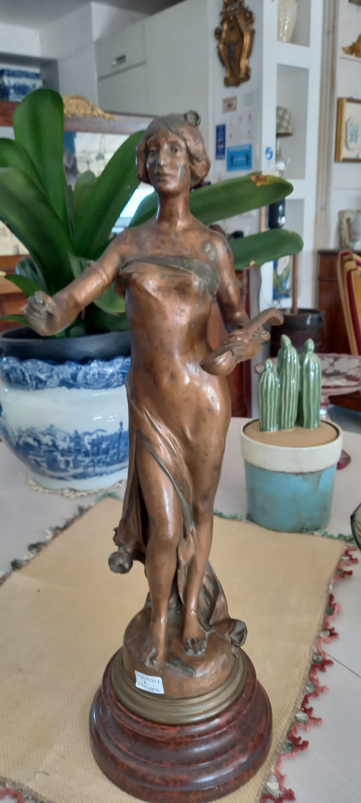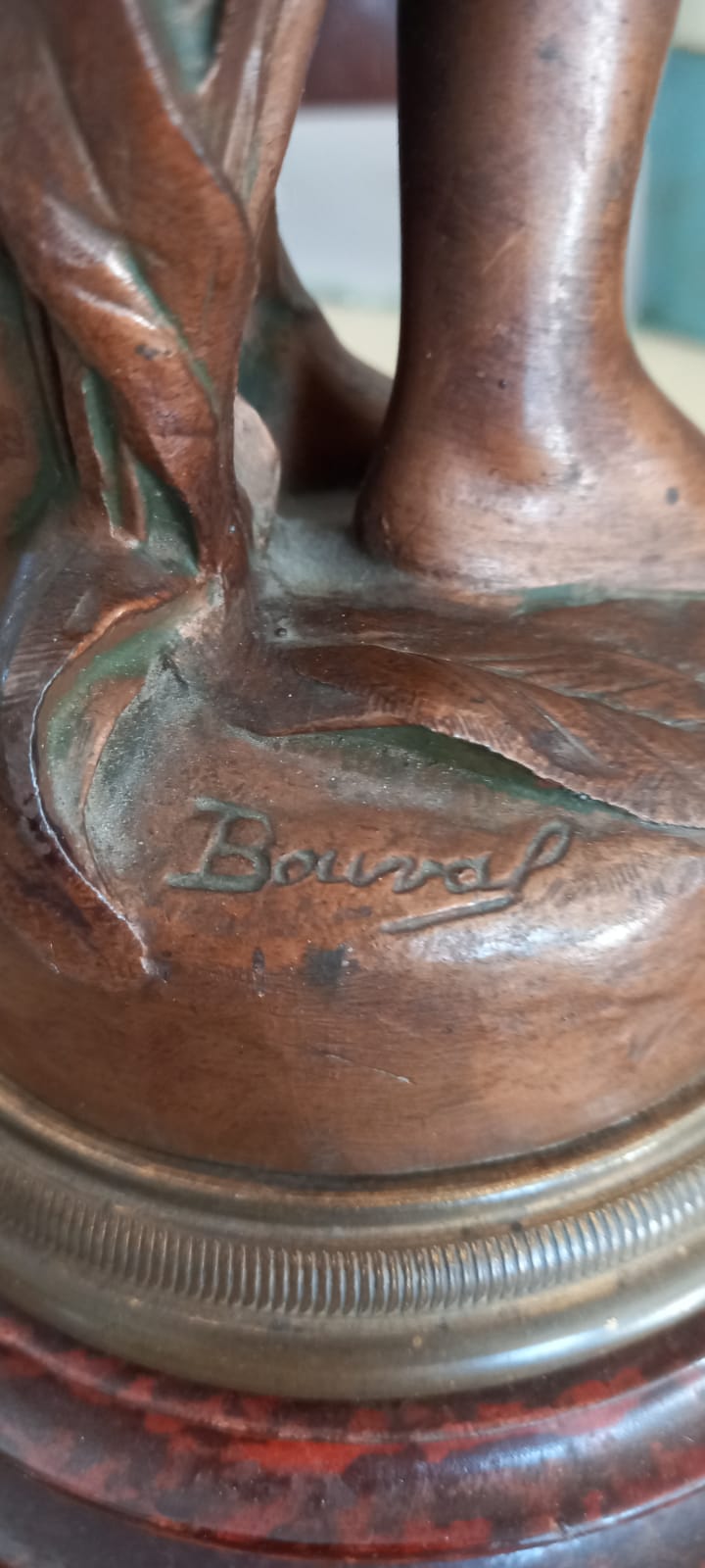 Bronze patinated sculpture on a wooden base, by Bouval, early 1900s.
