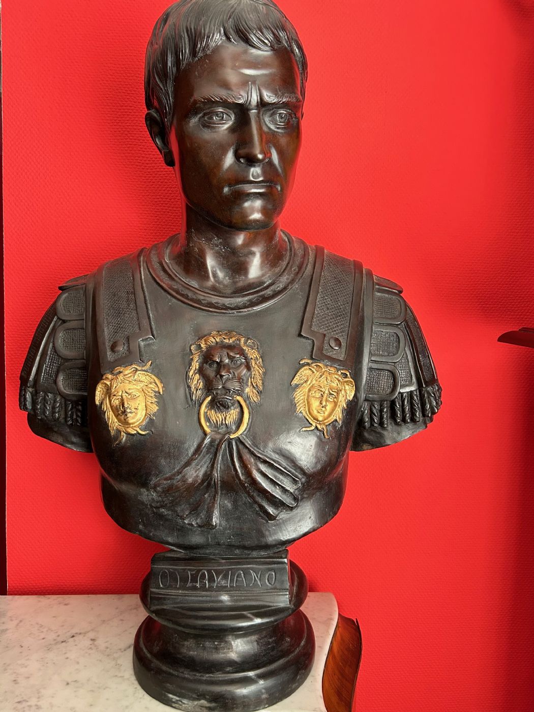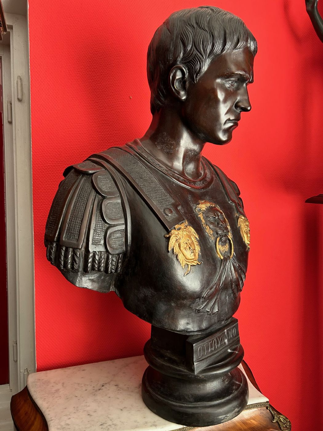 Un belissimo grande busto di bronzo raffigurante i'imoeratore romano "OTTAVIANO", misura: altezza 85cm, larghezza 60cm è profondità 30cm, antica fonderia CHIURAZZI, Napoli, Italia anni 50;