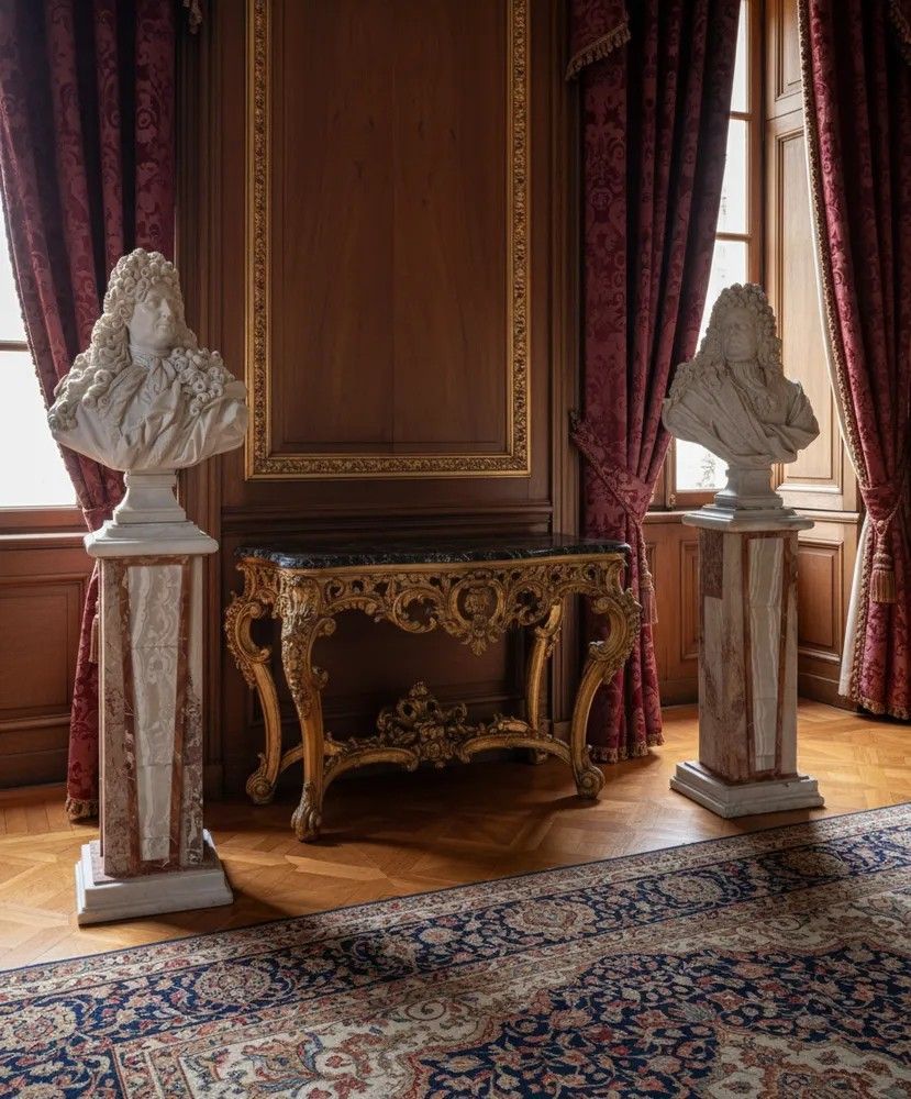 Questa coppia di busti in marmo è un'opera d'arte straordinaria, rappresentando nobili francesi del XIX secolo. Uno dei busti raffigura Luigi XIV, il Re Sole. Sono di eccelsa manifattura italiana, poggiano su due colonne realizzate in diaspro siciliano, onice e marmo bianco di Carrara.Manifattura italiana di alta qualità.Le colonne risalgono al XIX secolo.Misure busti: H 100 x L 76 x P 35 cmMisure colonne: H 137 x L 55 x P 39 cmLe colonne ed i busti possono essere venduti separatamente.Stile: NeoclassicoMateriale: Marmo/PietraAltezza (cm): 230Larghezza (cm): 76Profondità (cm): 39Epoca: XX Secolo - 1900