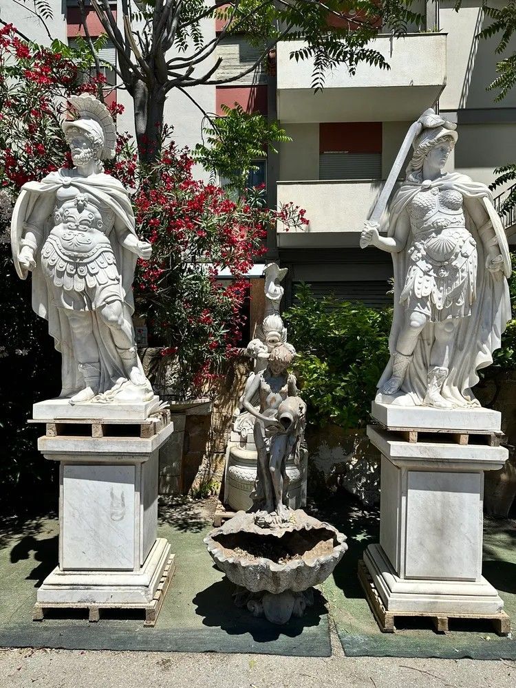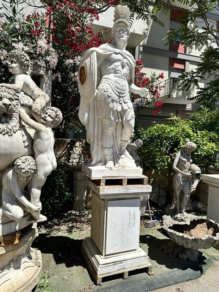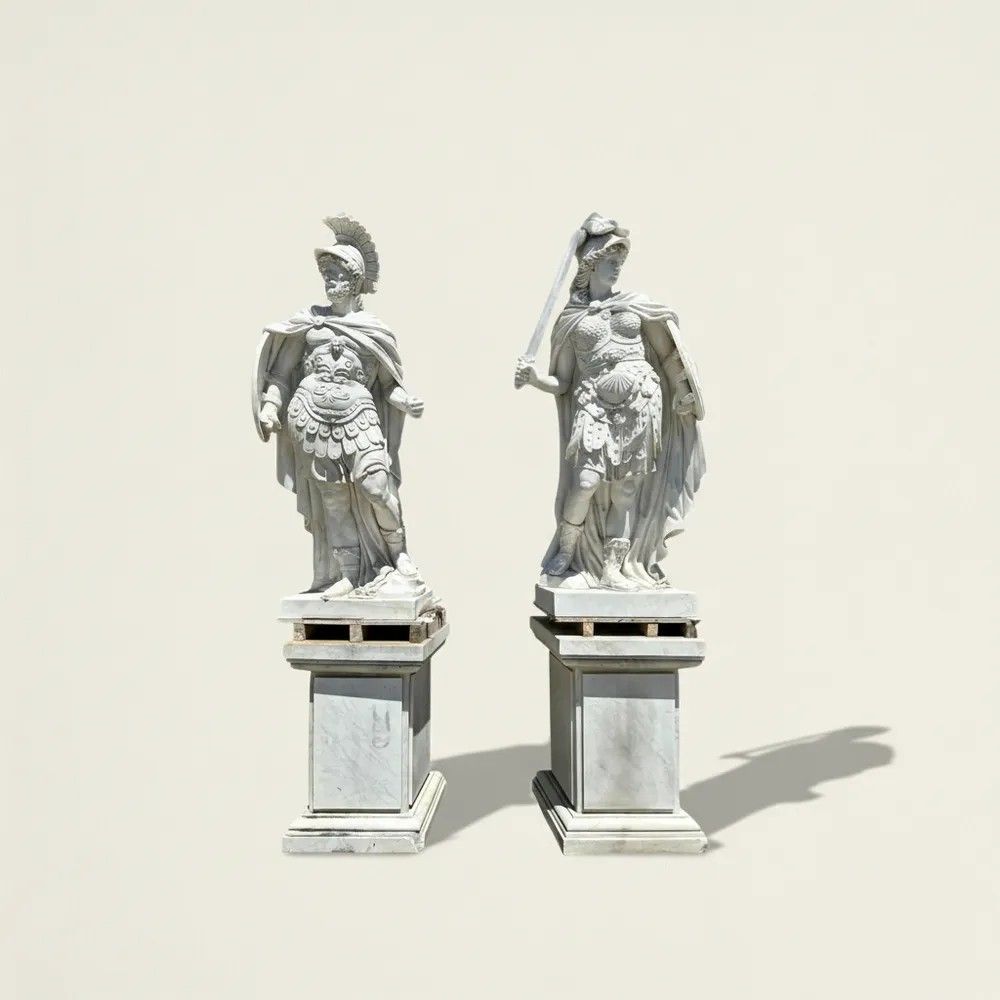 Grandi Sculture di Antichi Guerrieri in Marmo Bianco
