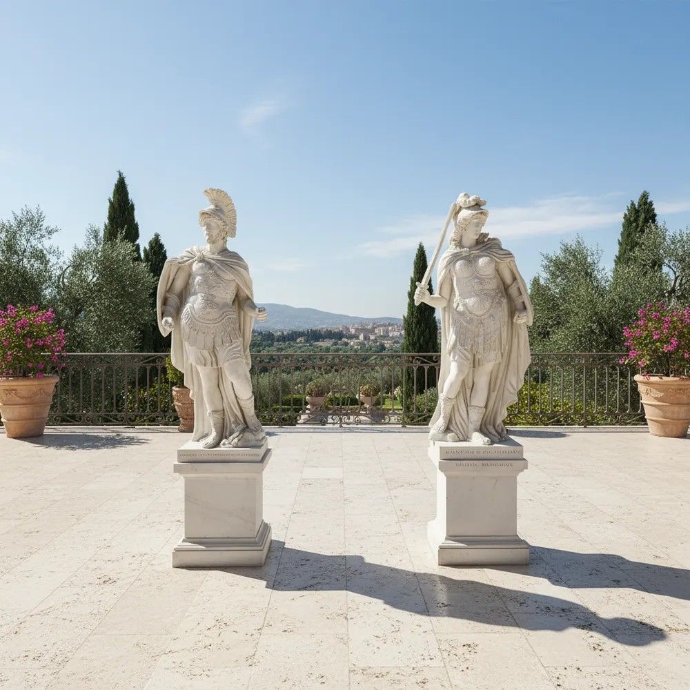 Scopri la magnificenza dei Grandi Guerrieri con le nostre imponenti e monumentali sculture realizzate in marmo bianco. Ogni dettaglio è curato con precisione, mettendo in evidenza la maestria degli artigiani italiani. Queste opere sono un'ode alla forza e alla bellezza, capaci di trasformare...