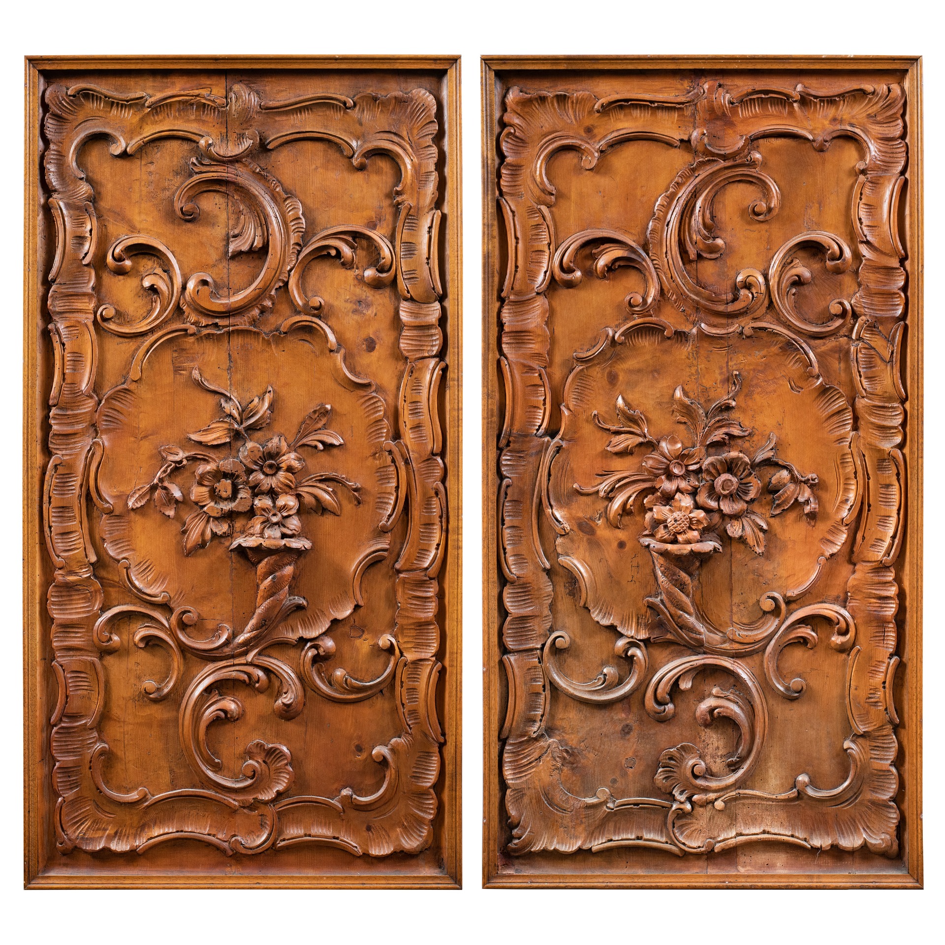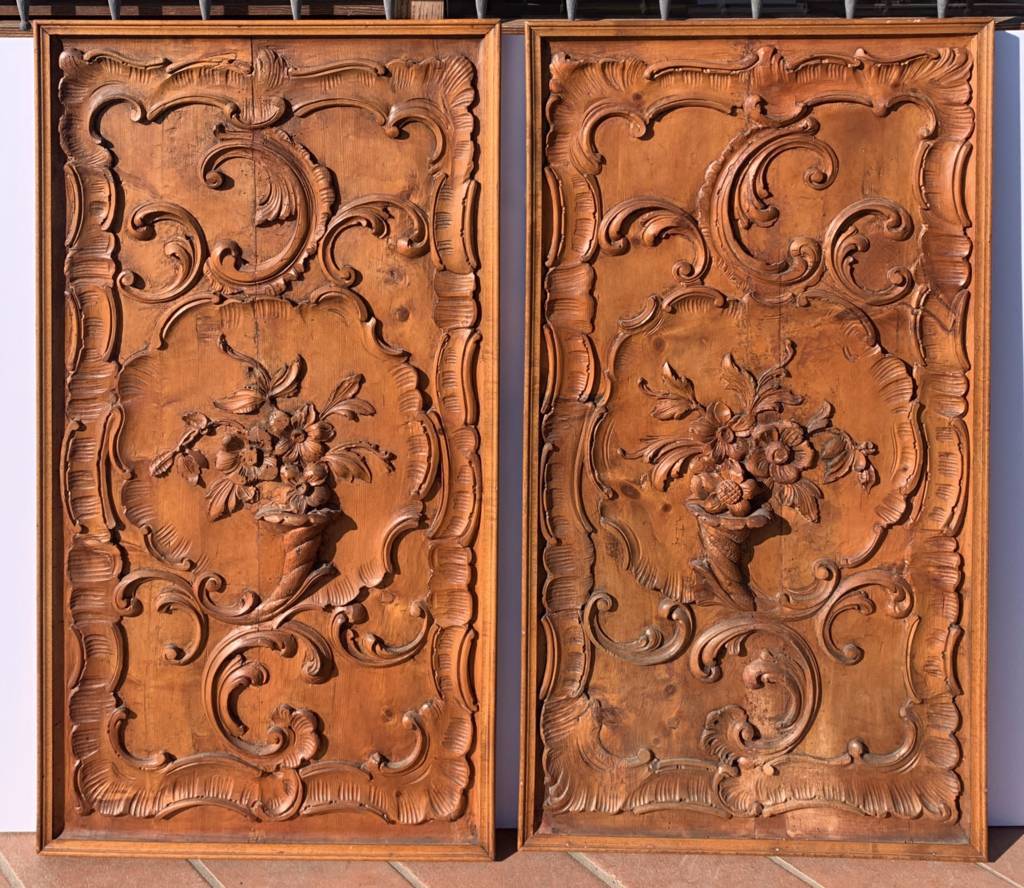 Pair of carved wooden wall panels. Italy, first half of the 20th century.