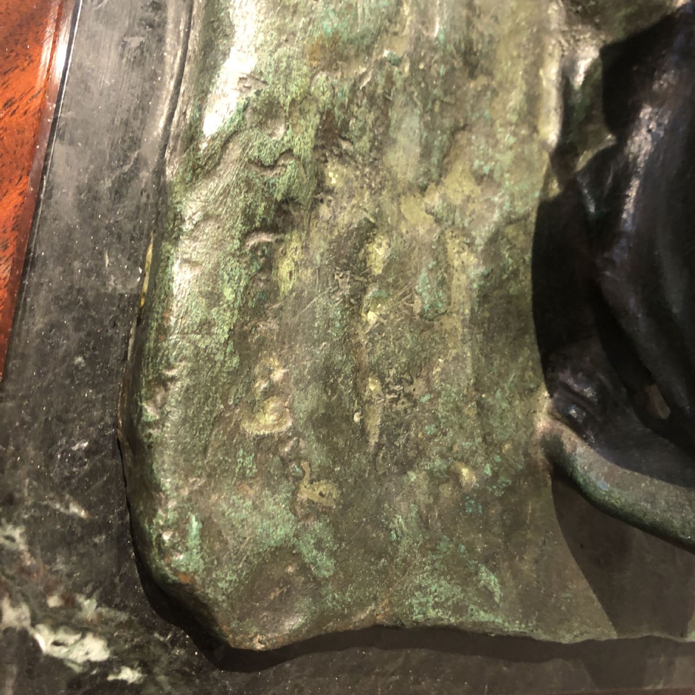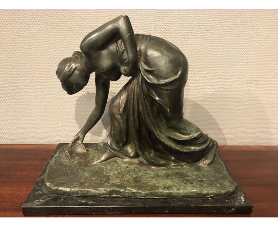 Una bella igura feminile che racoglie aqua, bronzo, in una bella patina verde, su una base di marmo nero, autore: GIORGIO CERAGLIOLI; misure: larghezza 44cm, altezza 37cm è profondità 27cm; A very nice female figure made of bronze, with a nice green patina and a black marble base, artist: GIORGIO CERAGLIOLImeasurements: width 44cm, hight 37cm and depth 27cm;