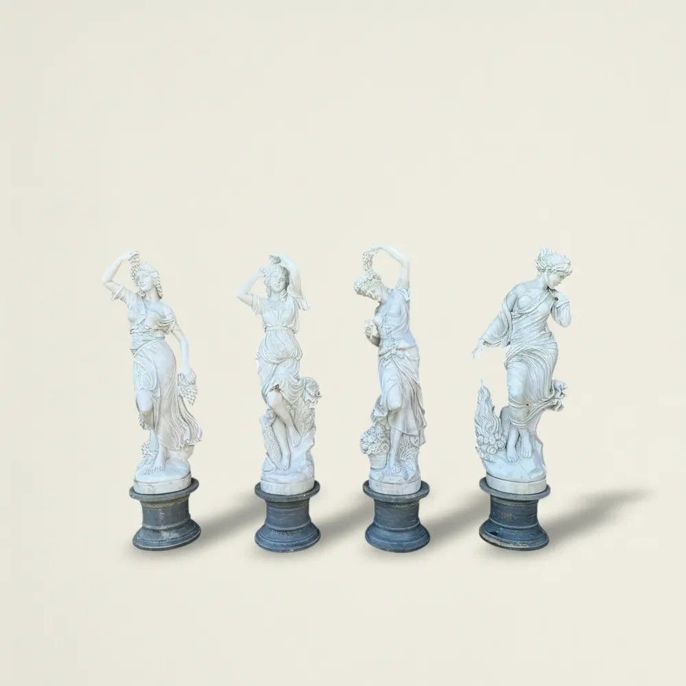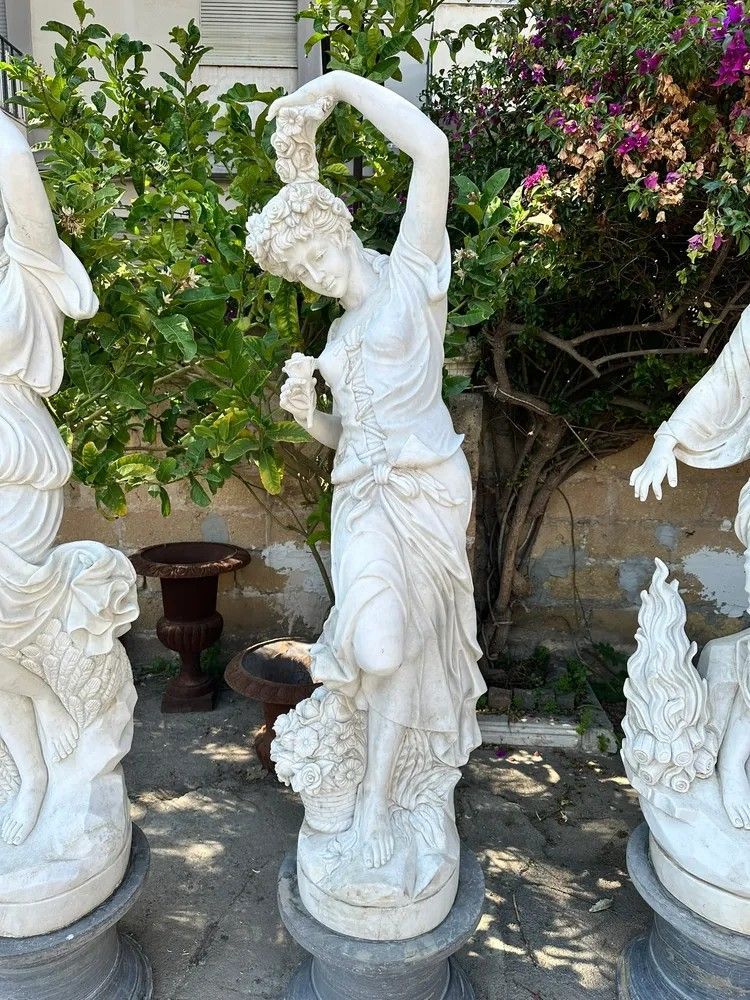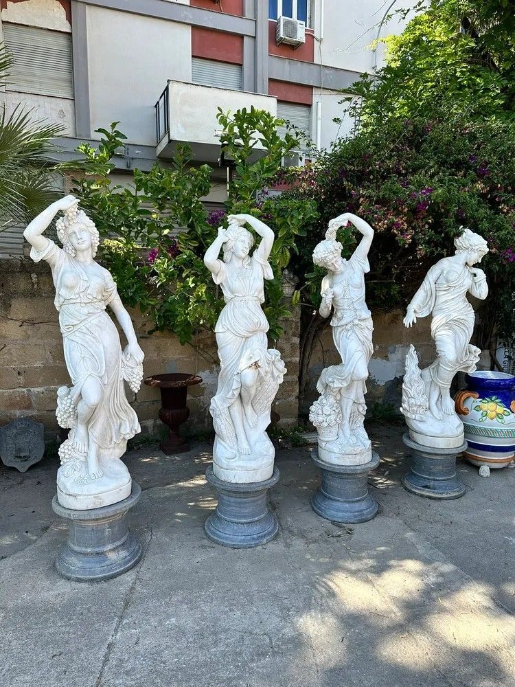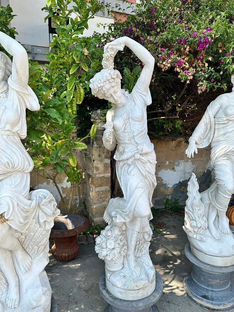 Sculture in Marmo Bianco "Le Quattro Stagioni" rappresentano una perfetta sintesi di tradizione e maestria artigianale italiana. Queste sculture sono realizzate con pregiato marmo bianco e rappresentano visivamente l'eleganza e la bellezza di ogni stagione dell'anno.Primavera - simboleggia il rinnovarsi della vita, con dettagli floreali intricati.Estate - cattura la vivacità del sole e la bellezza dei paesaggi estivi.Autunno - esprime la ricchezza dei raccolti e i caldi toni autunnali.Inverno - rappresenta la sublime tranquillità dei paesaggi innevati.Le sculture, realizzate in Italia nei primi del '900, hanno una qualità eccezionale e dettagli minuti. Perfette per decorare interni moderni e classici, queste opere d'arte sono un must-have per gli amanti della scultura.Stile: NeoclassicoMateriale: Marmo/PietraAltezza (cm): 220Diametro: 50Epoca: XX Secolo - 1900