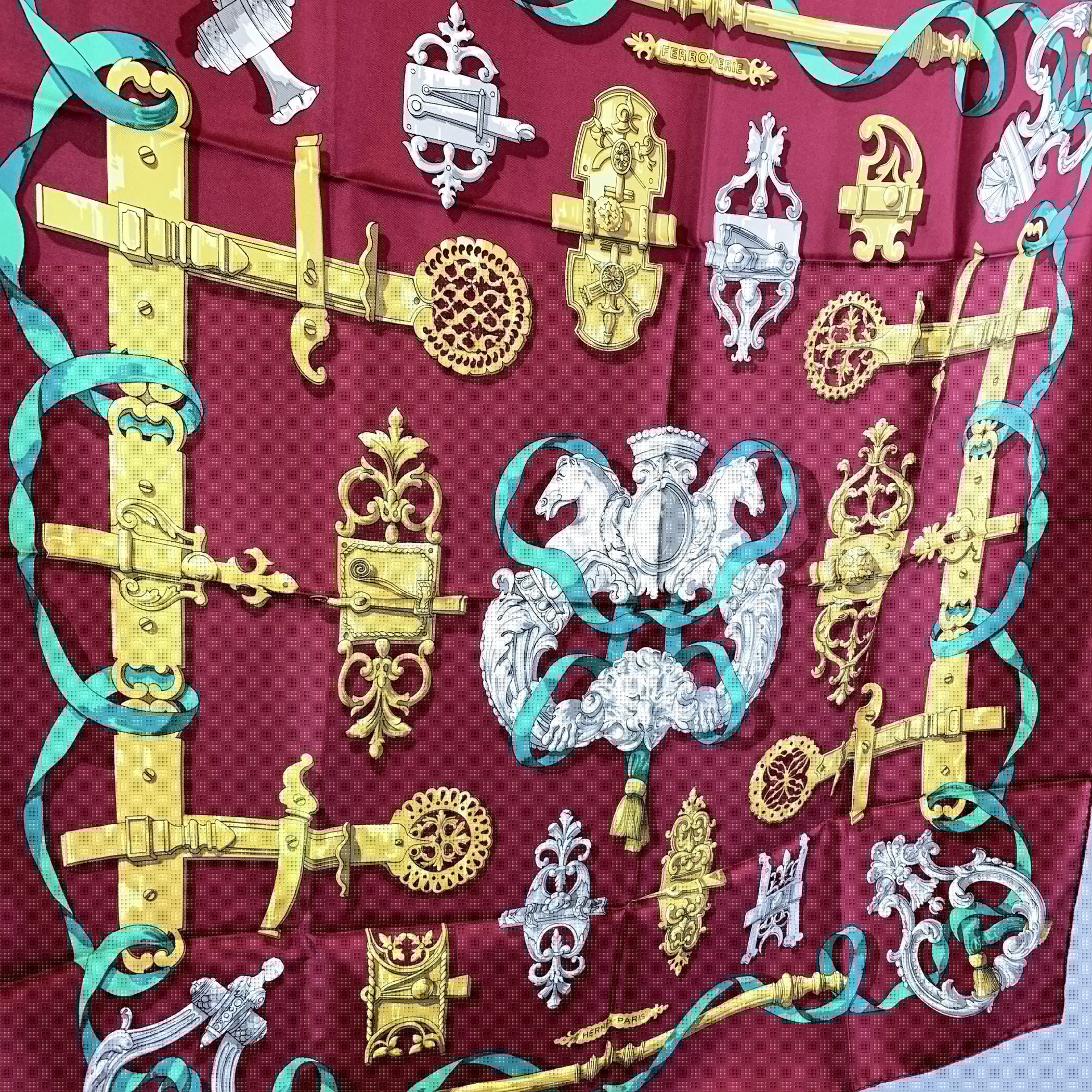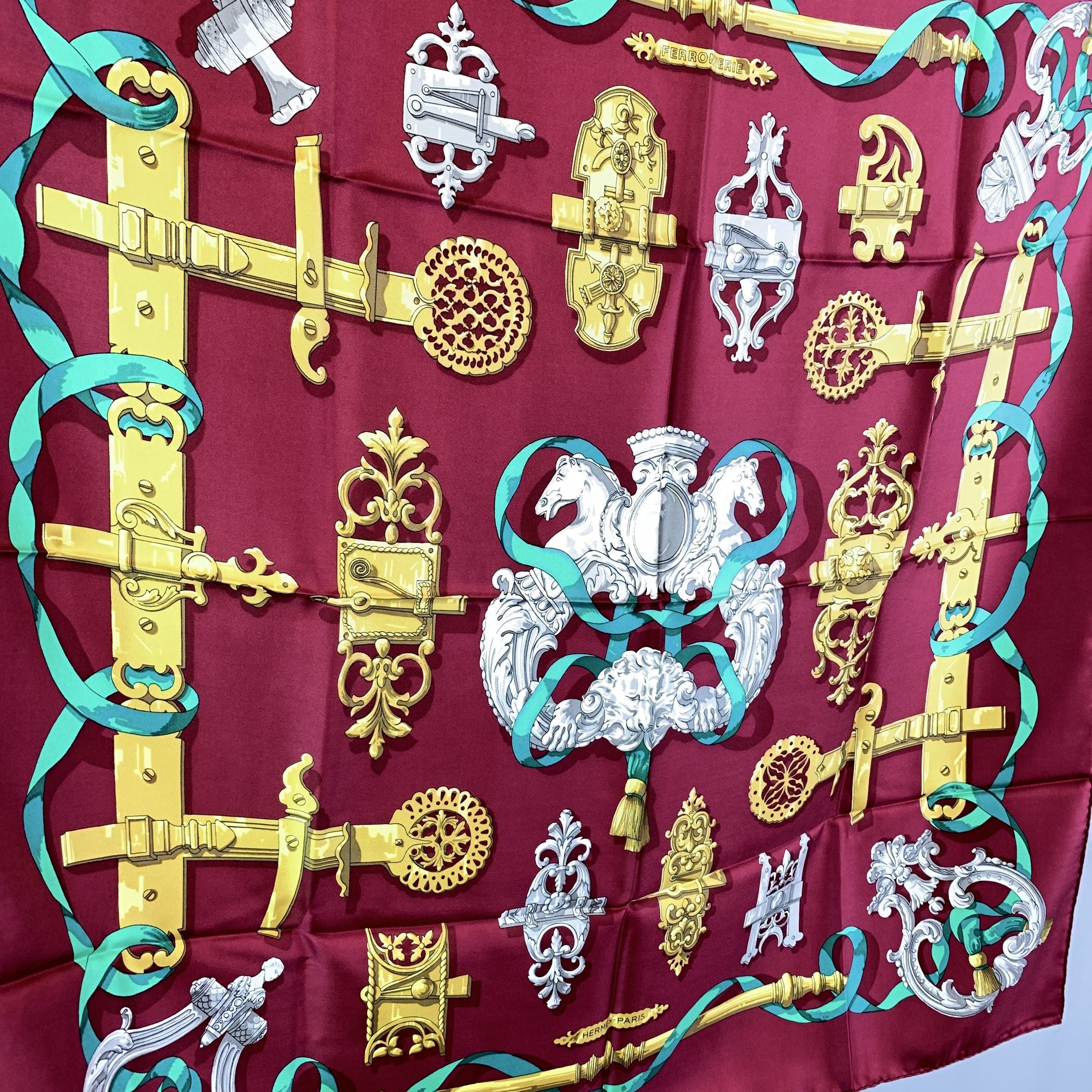 HERMES Foulard Vintage in Seta Col. Bordeaux Ferronnerie