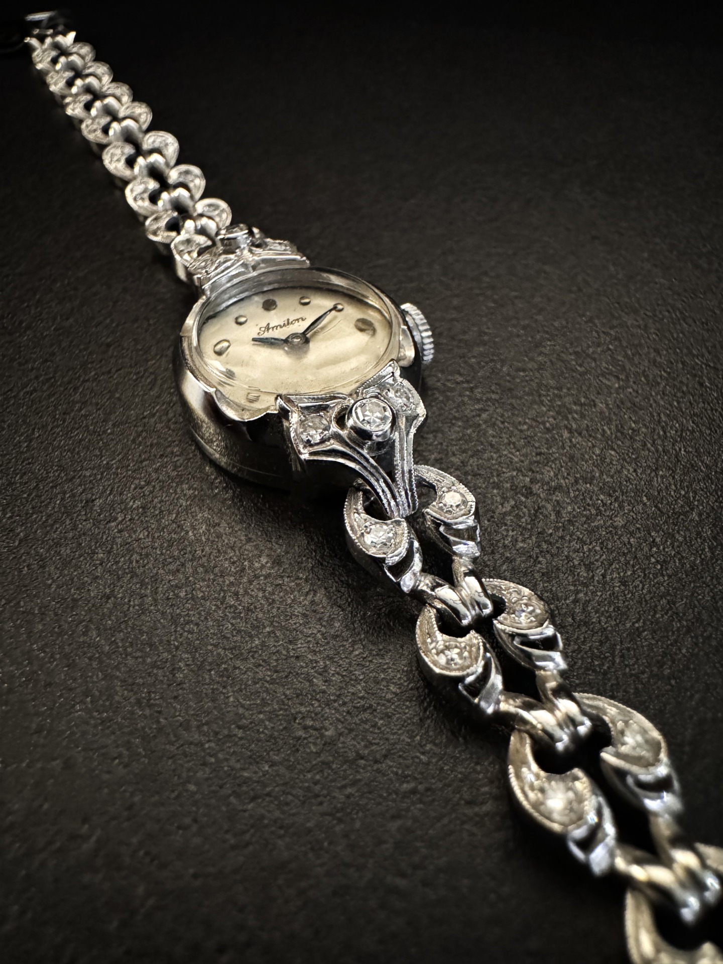 Orologio-Bracciale in Oro Bianco con Diamanti – Eleganza Americana Anni ’50 Nell’America degli anni ’50, la gioielleria era raffinatezza e splendore, trasformando ogni creazione in un’opera d’arte sartoriale da indossare. Questo orologio-bracciale...