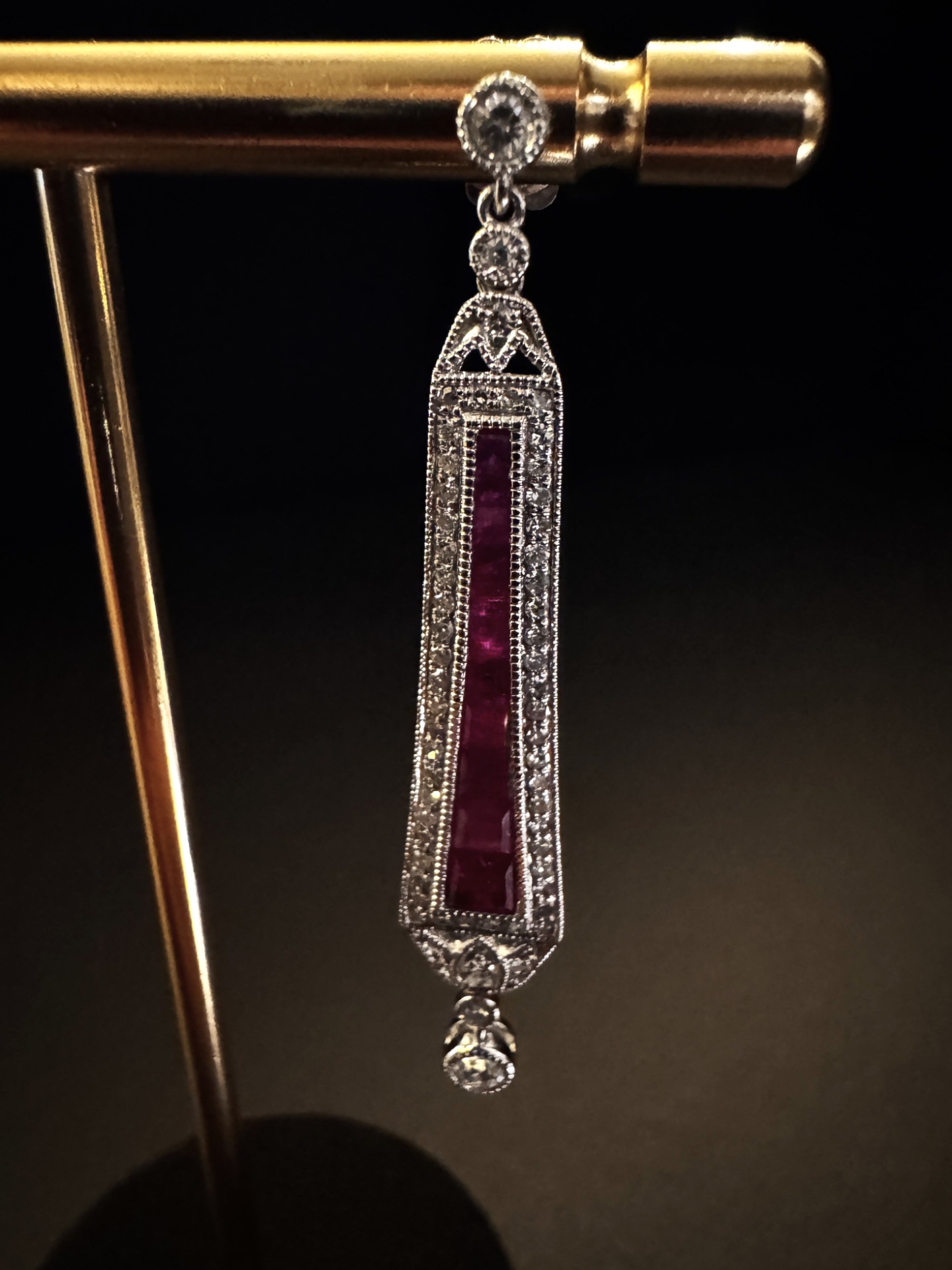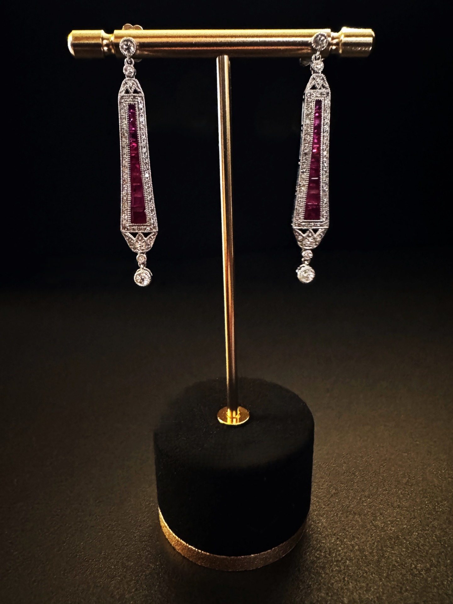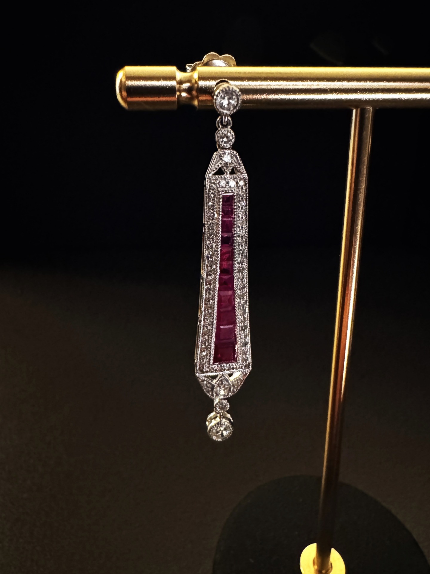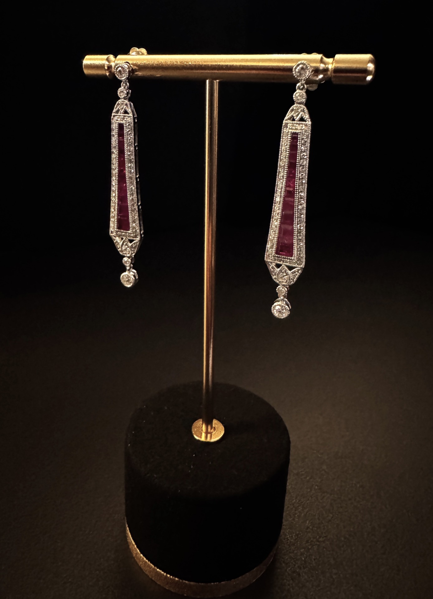 SPLENDIDI ORECCHINI PENDENTI IN PLATINO CON RUBINI E DIAMANTI – PROVENIENZA AMERICANA
