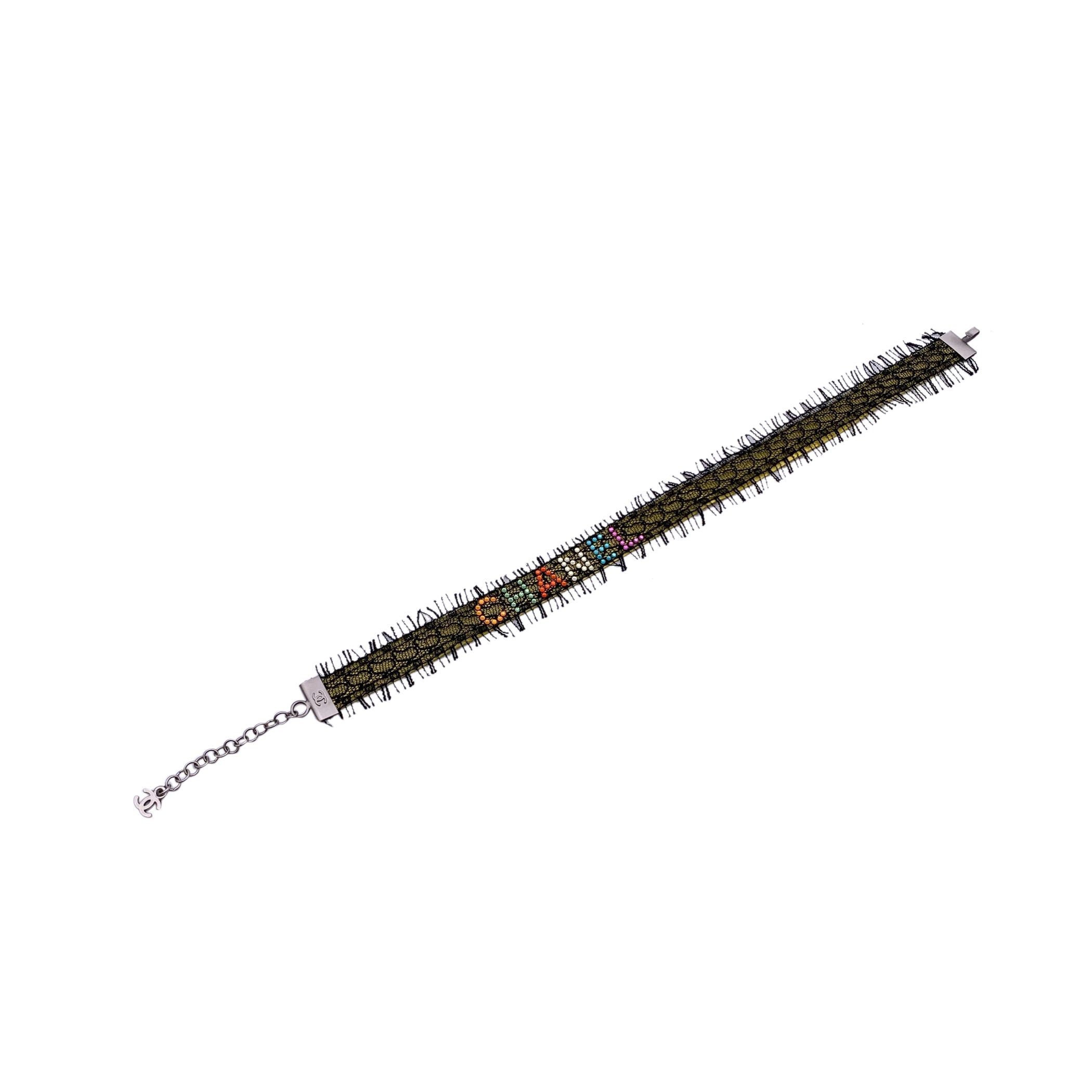 https://opavintage.it/products/chanel-multicolor-rhinestones-yellow-suede-black-lace-choker-necklace-1