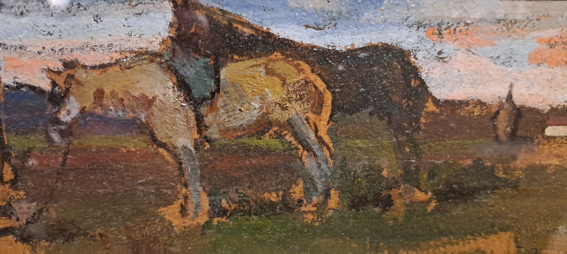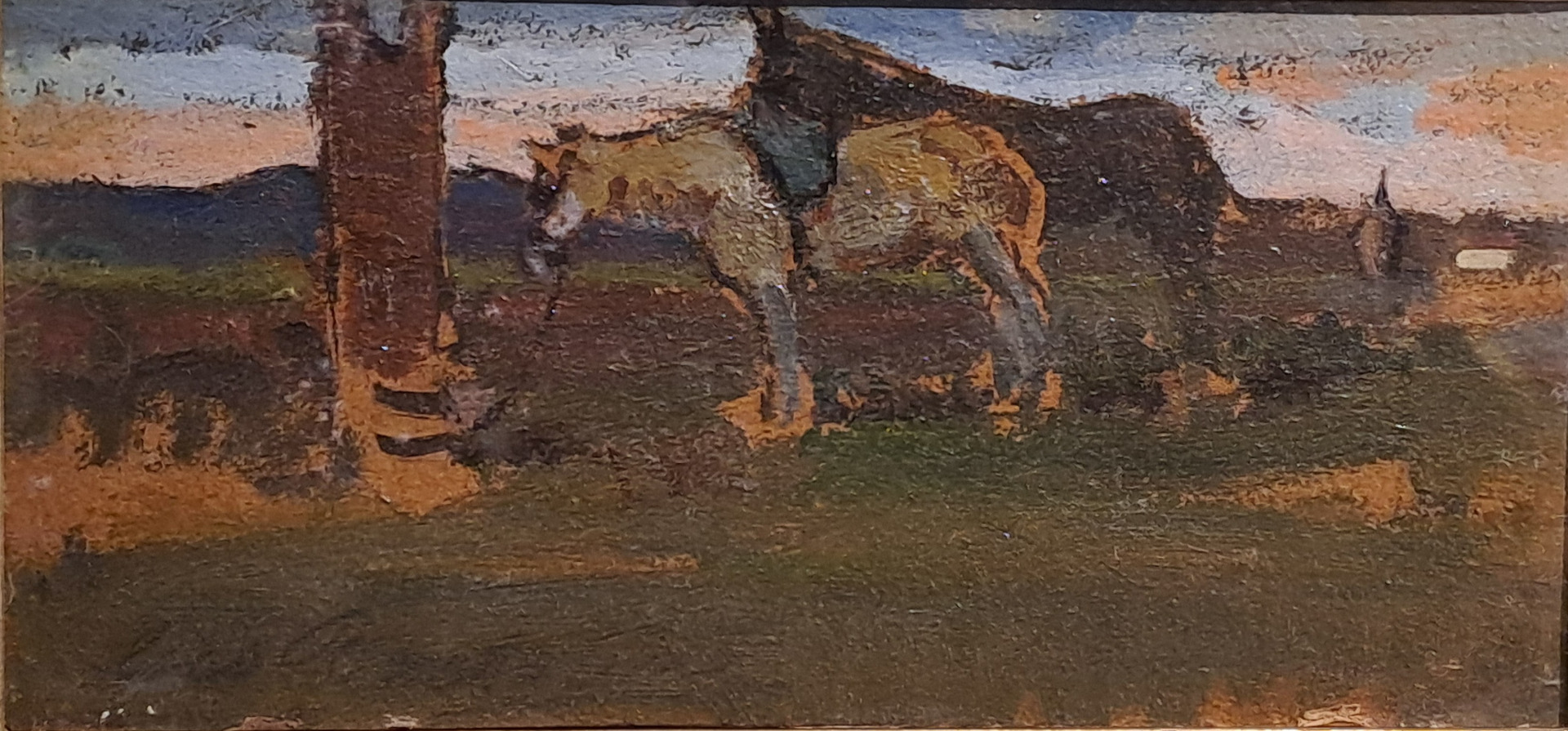 HORSES IN LANDSCAPE - OIL ON PANEL - GIOVANNI BARTOLENA (Livorno 1866 – 1942)