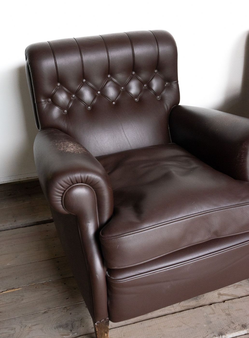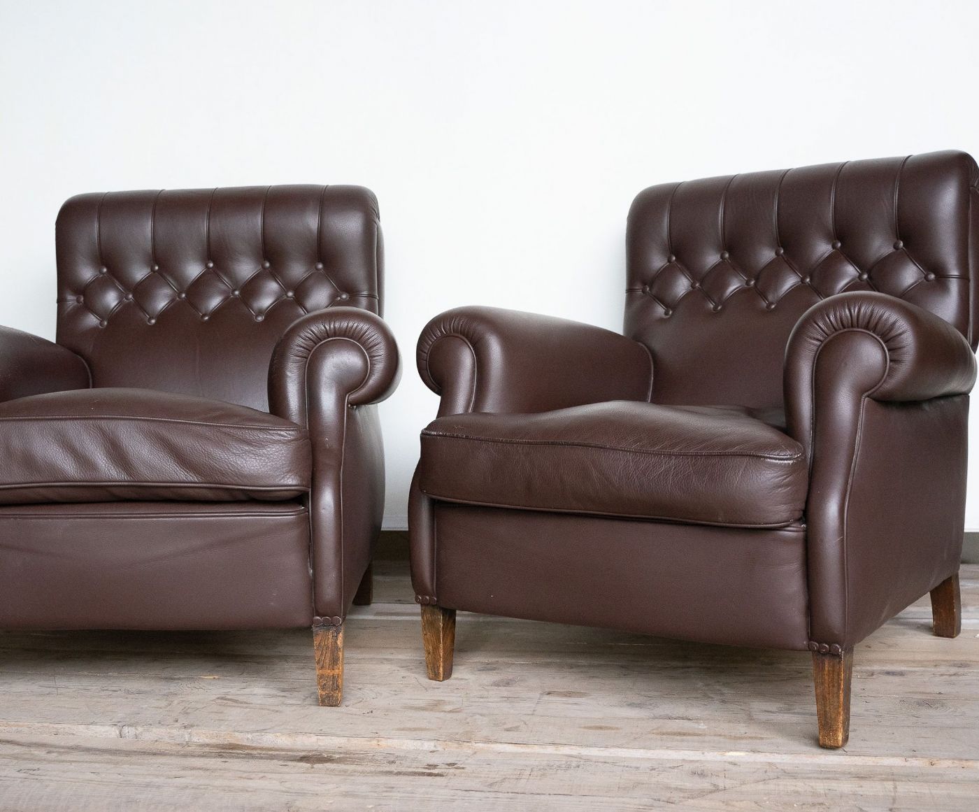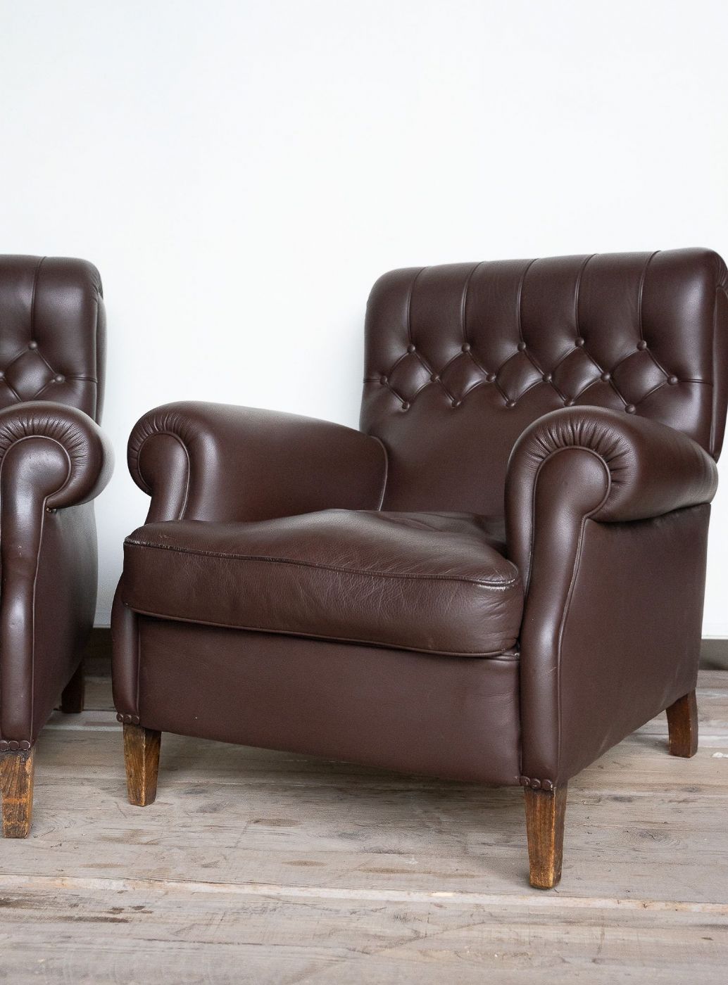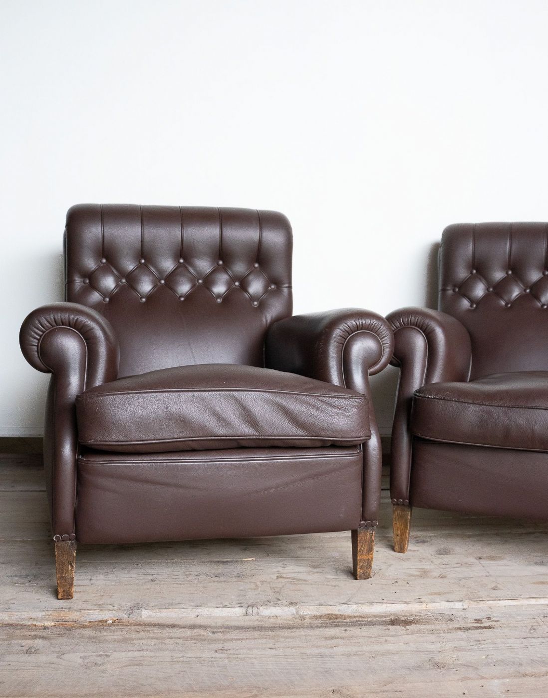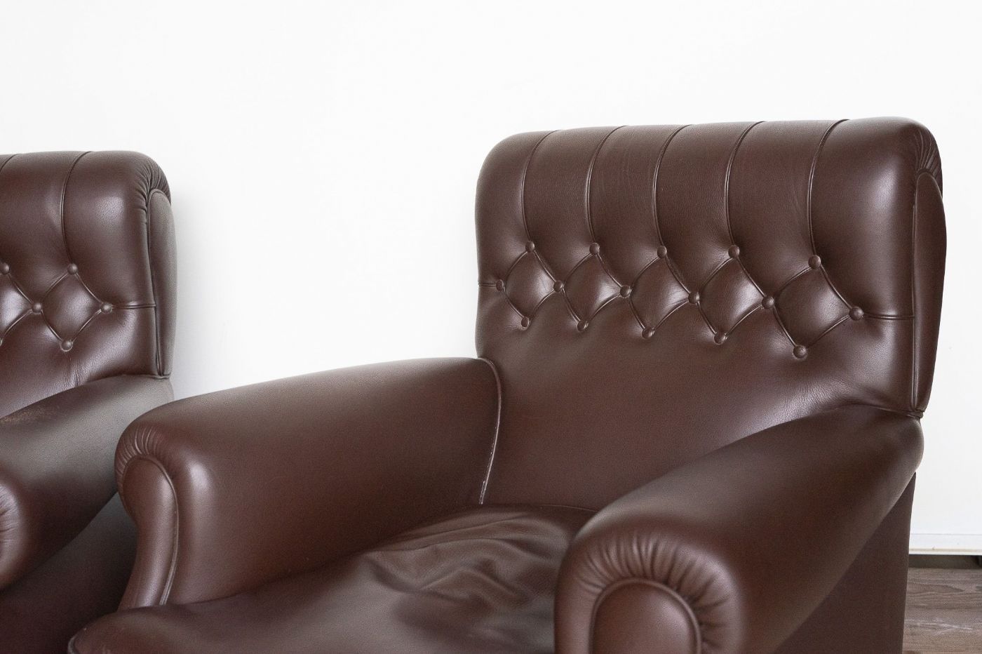 Coppia di poltrone Frau in pelle testa di moro – Anni ’60/’70Dimensioni: L 84 cm × P 100 cm × H 87 cm – Altezza seduta 40 cm