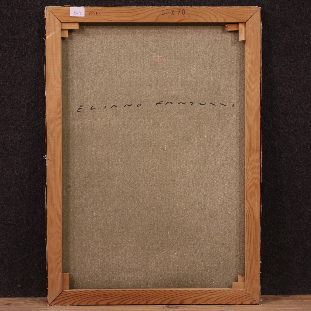 Italian painting from the second half of the 20th century. Artwork oil on canvas, first canvas, depicting figures in the night with boats of good pictorial quality. Very pleasant painting in expressionist style, characterized by deformed and elongated figures in two-dimensional space (see photo), for antique dealers and interior decorators. Artwork signed lower left and on the back of the canvas (see photo) attributable to the painter Eliano Fantuzzi (1909-1989) lacking authentication. Canvas with some small signs of aging (see photo) overall in good state of conservation.