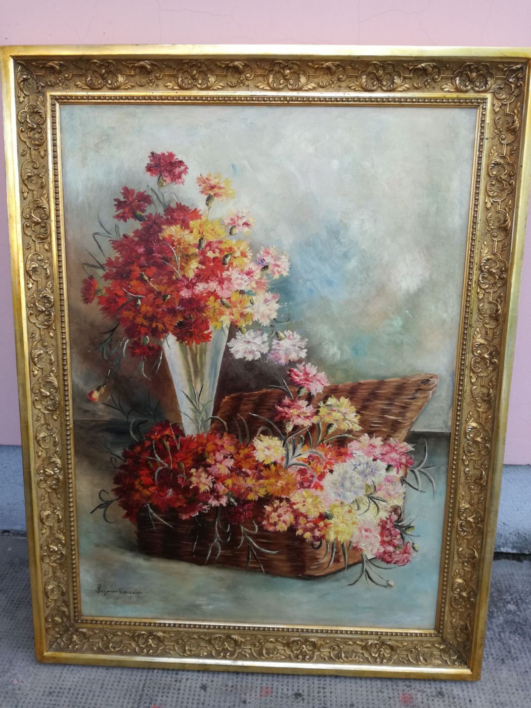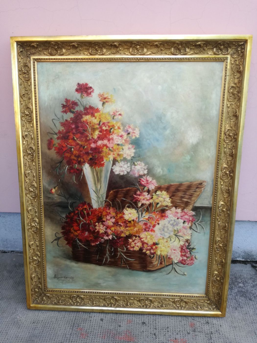 Signed flower painting from the early 1900s, original canvas.Size: 116x89 For info 3282493057