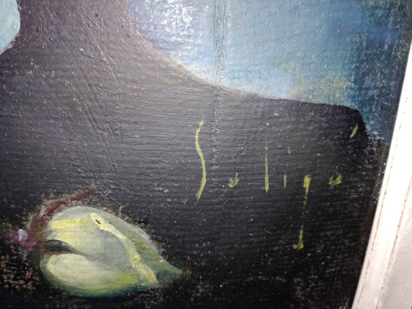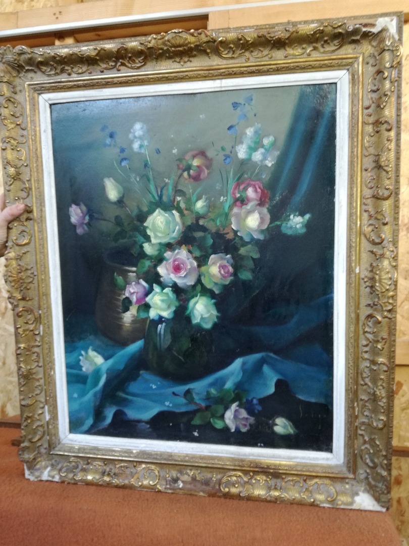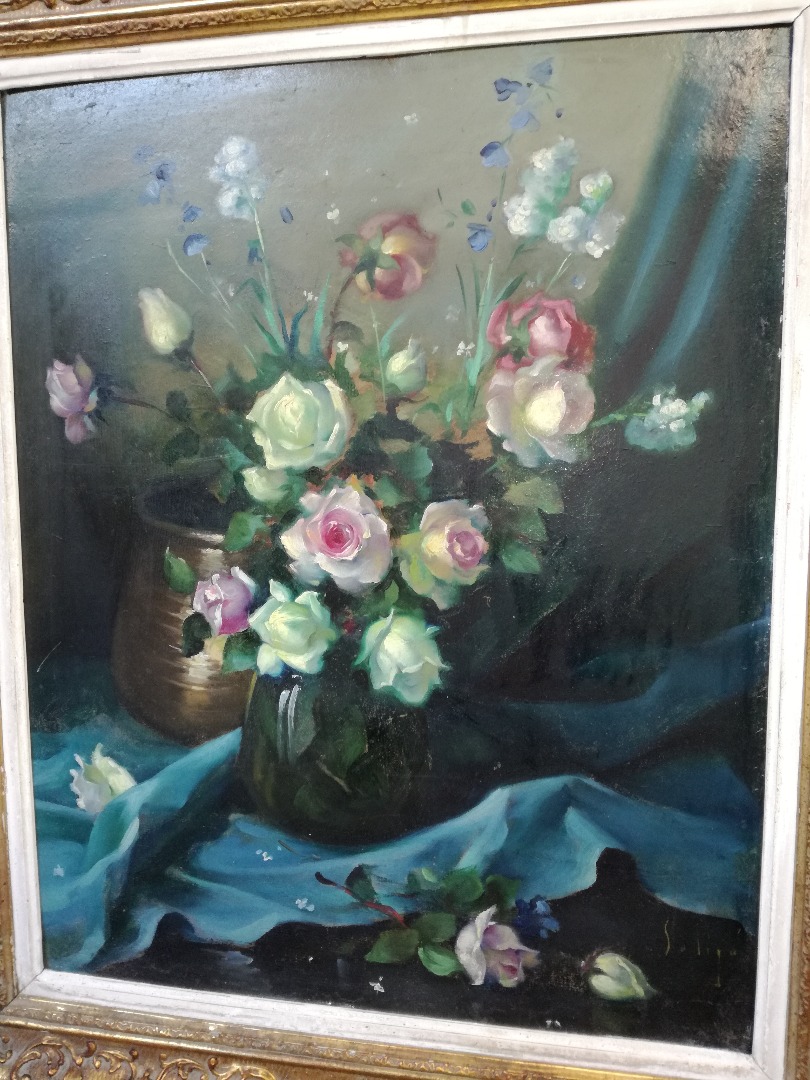 French painting with flowers painted on cardboard from the 1950s.Signed Soligó.
