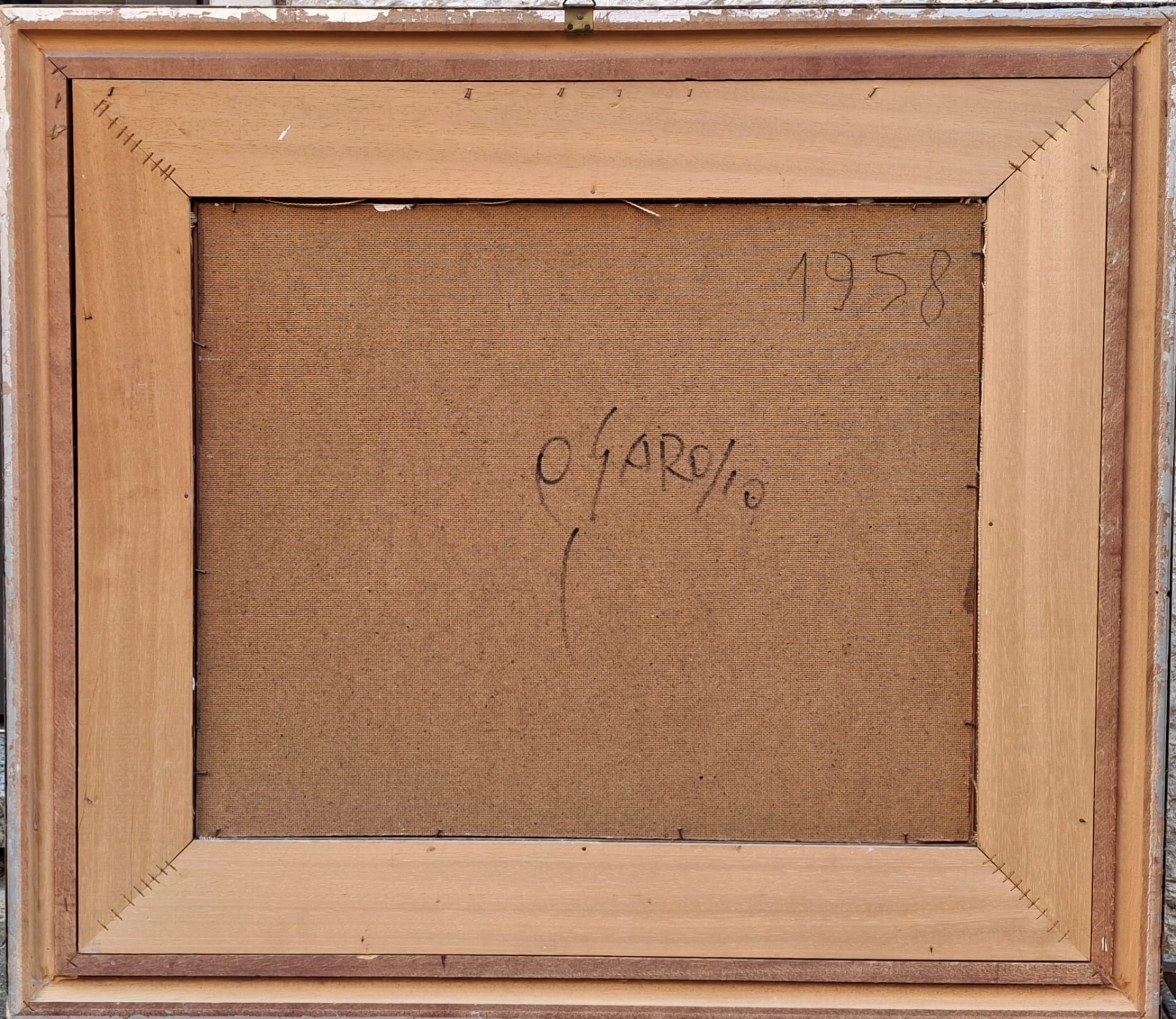 Ottorino Garosio (1904-1980), Il Mattarello da Vestone, olio su faesite, 45×55 cm, con cornice 72×82 cm, firmato in basso a sinistra , datato a tergo 1958, pubblicato sul volume “Ottorino Garosio (1904-1980) Geografie Umane tra la Valle Sabbia e la città”.