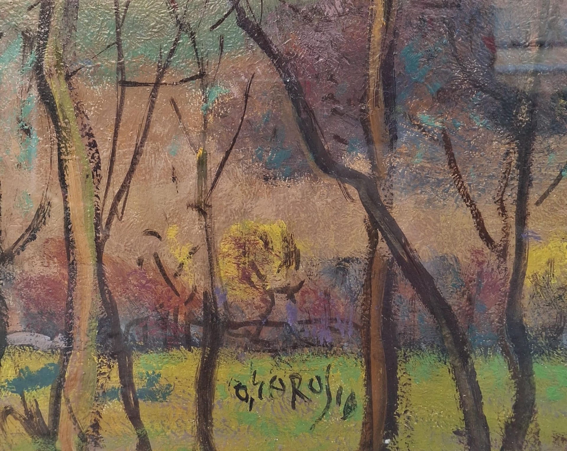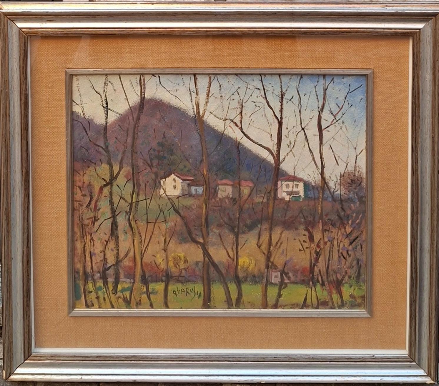 Ottorino Garosio (1904-1980), Il Mattarello da Vestone, olio su faesite, 45×55 cm, con cornice 72×82 cm, firmato in basso a sinistra , datato a tergo 1958, pubblicato sul volume “Ottorino Garosio (1904-1980) Geografie Umane tra la Valle Sabbia e la città”. http://www.oldpaintingsonline.com