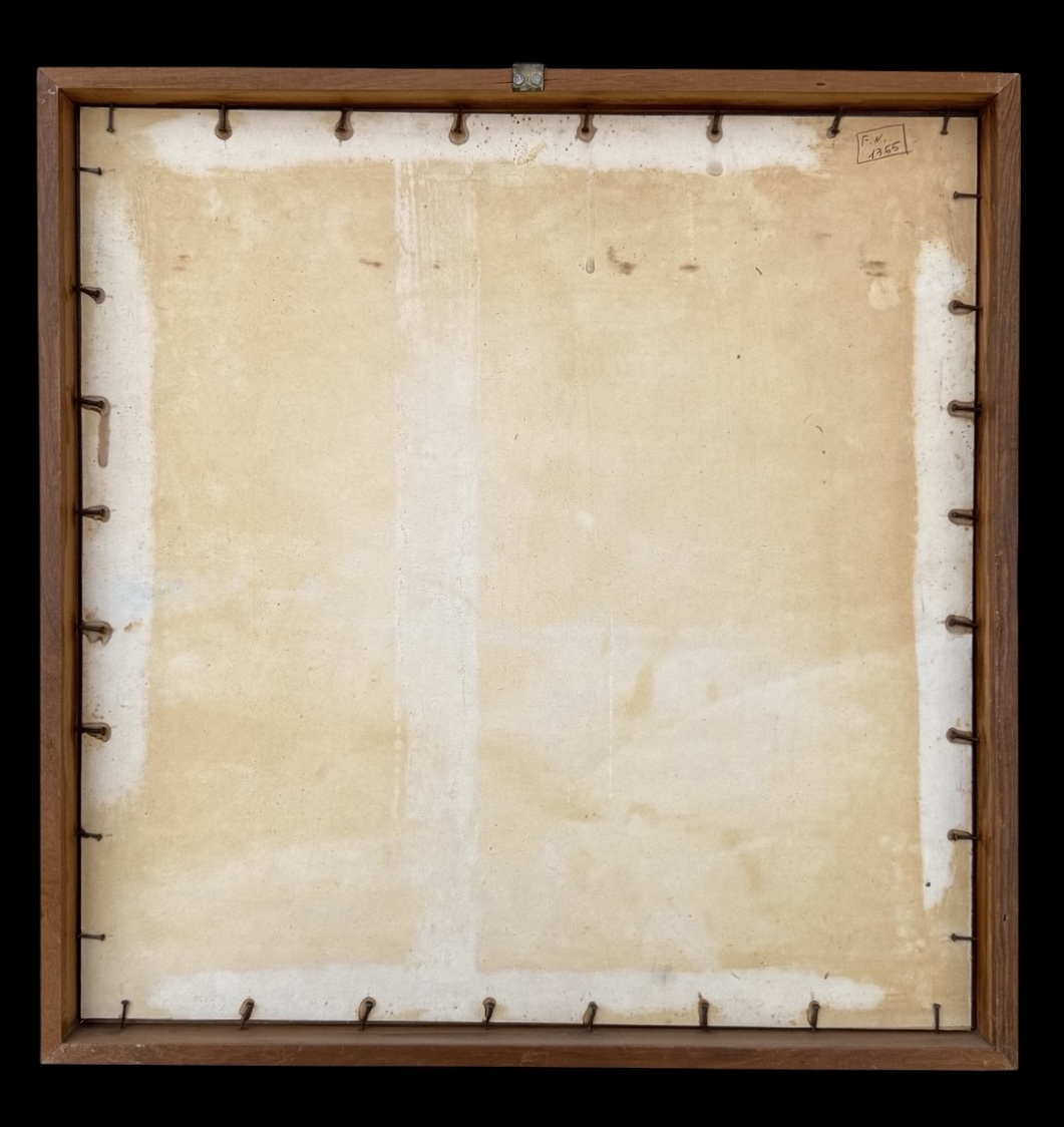 Watercolor-charcoal on paper depicting a rural landscape with a house. Signed with initials. Frame: 40x39 cm. Painting: 22x21 cm.