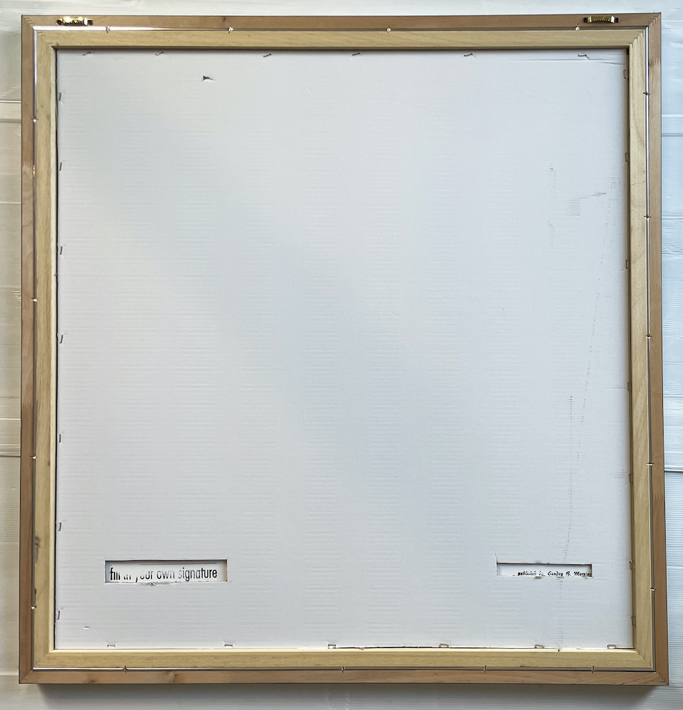 This version of the color serigraphic work is recognizable by the stamp "Published by Sunday B. Morning" and the back marked "Fill in Your Own Signature", a clear ironic reference to the art world. The Sunday B Morning editions, born as official unsigned reprints, carry on an ironic game on the art world and, with the famous writing on the back "Fill in your own signature", the work becomes accessible, multiplied, perfectly in line with Warhol's vision: art for everyone.