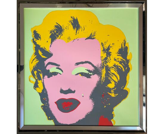 In full Pop Art spirit, Warhol repeats the image serially, varying the colors of the face, hair, and background. Sometimes the tones are bright and artificial, other times dark and melancholic. This contrast reflects the dual nature of Marilyn: a bright Hollywood star and, at the same time, a fragile and tragic figure. A powerful reflection on celebrity, beauty and myth in consumer society.