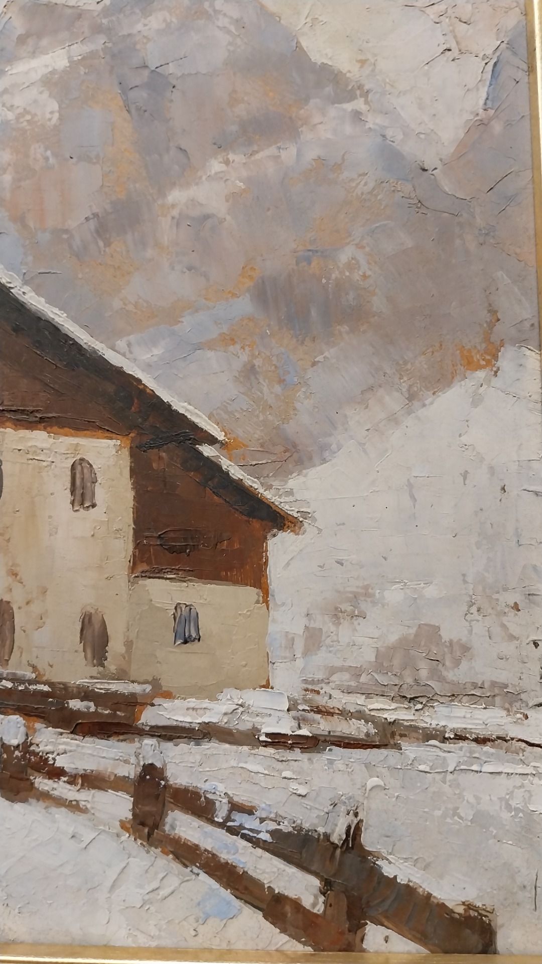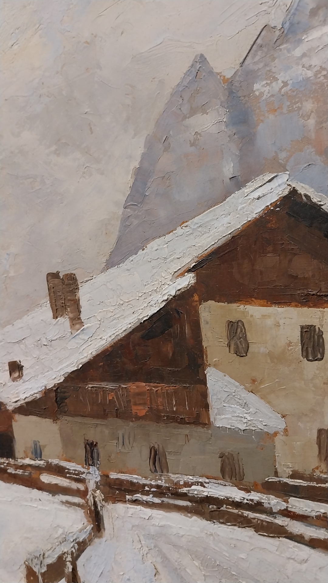 Simpatico e luminoso dipinto di Gino Ghedina (1894 - 1055) pittore Cortinese.Il dipinto emane un gran senso di tranquillita`. Anche la semplicita del dipinto lo rende molto moderno. Opera datata 1939 e fitmata in basso a sx.
