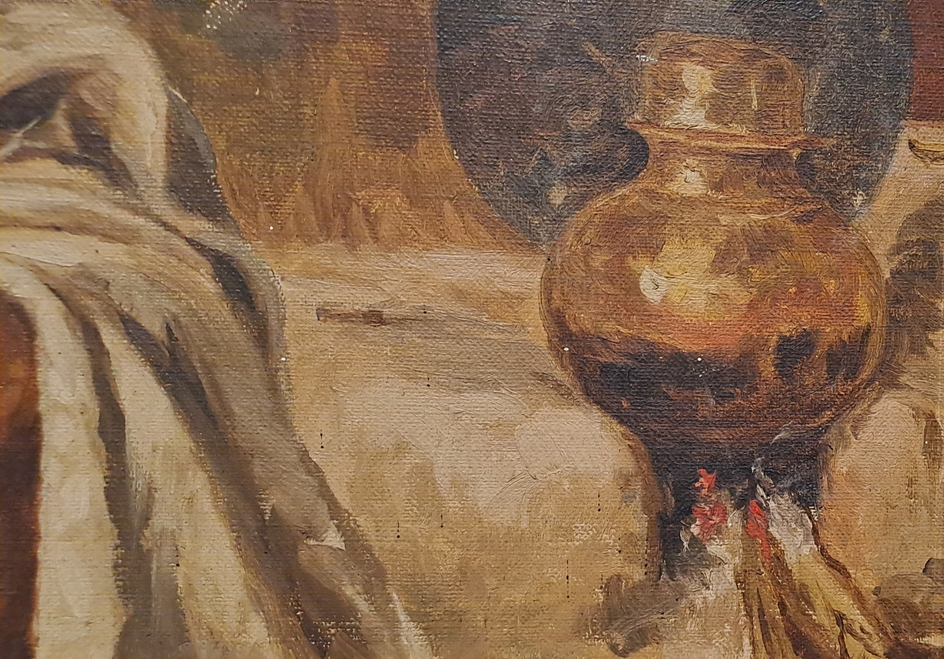 Fascinating Orientalist Oil on Canvas: "Eat to Live" (1926)