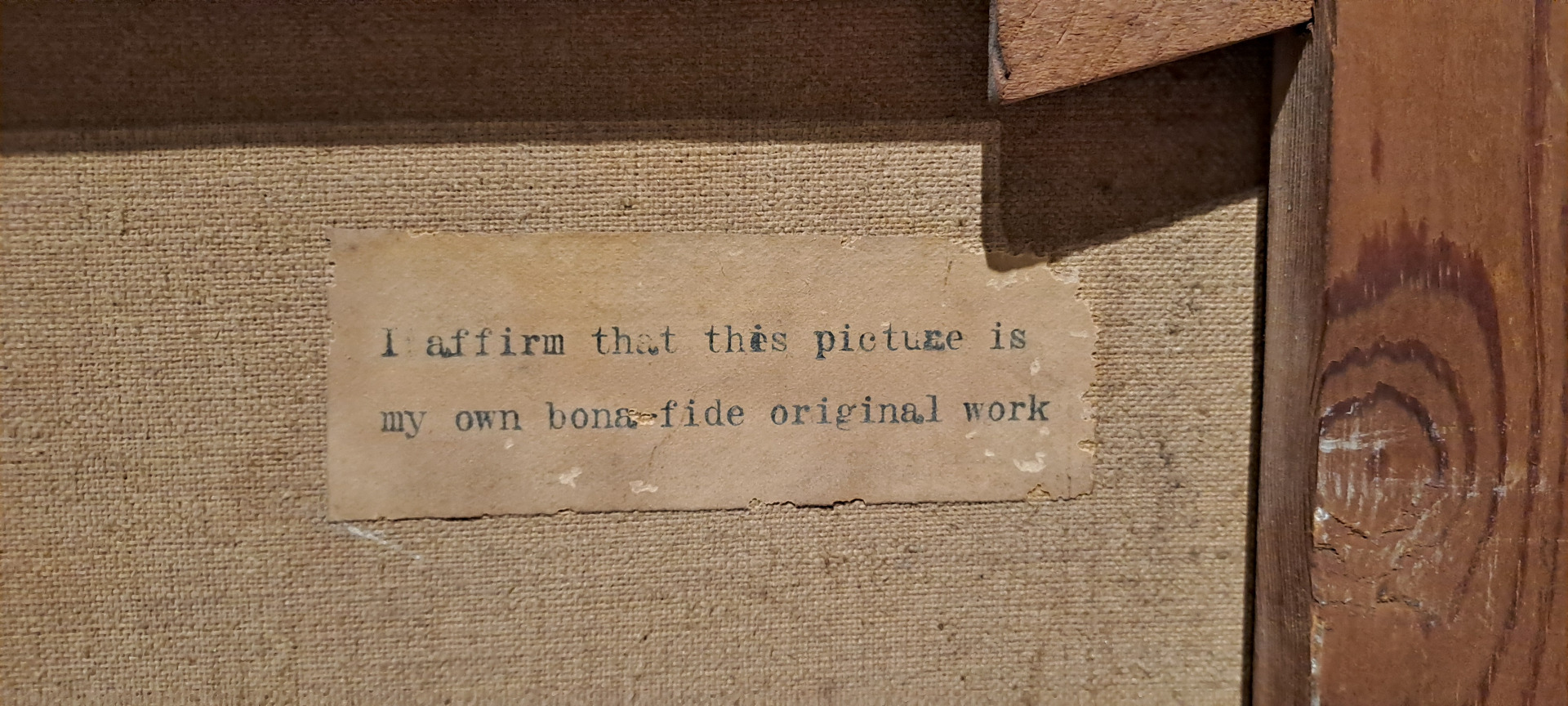 Author's Label: A signed typewritten note reads: "I affirm that this picture is my own bona-fide original work."