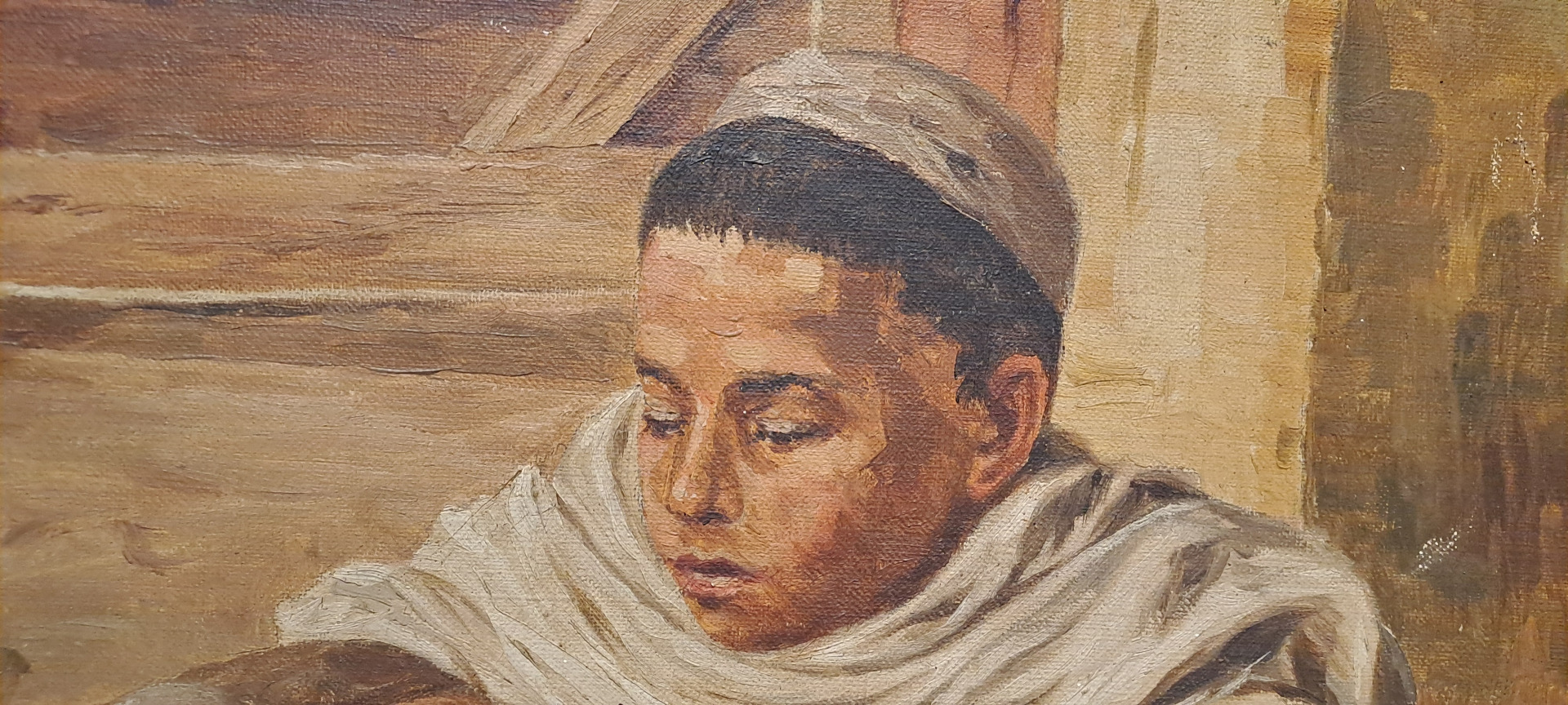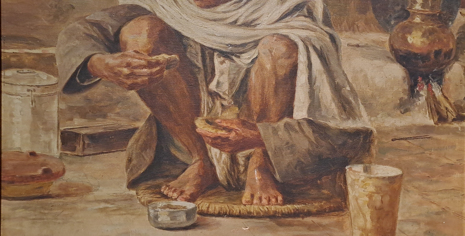 Fascinating Orientalist Oil on Canvas: "Eat to Live" (1926)
