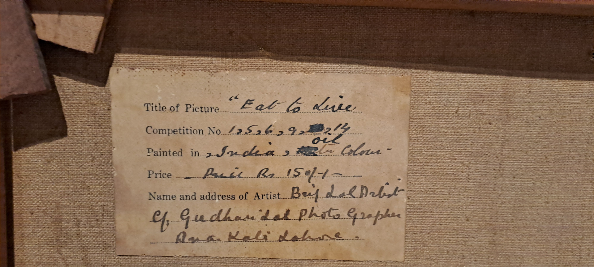Name and address of Artist: signature to be decipher Artist, Gurdial das Photographer, Ana Kali Lahore. (This suggests a strong connection with Lahore, now in Pakistan).