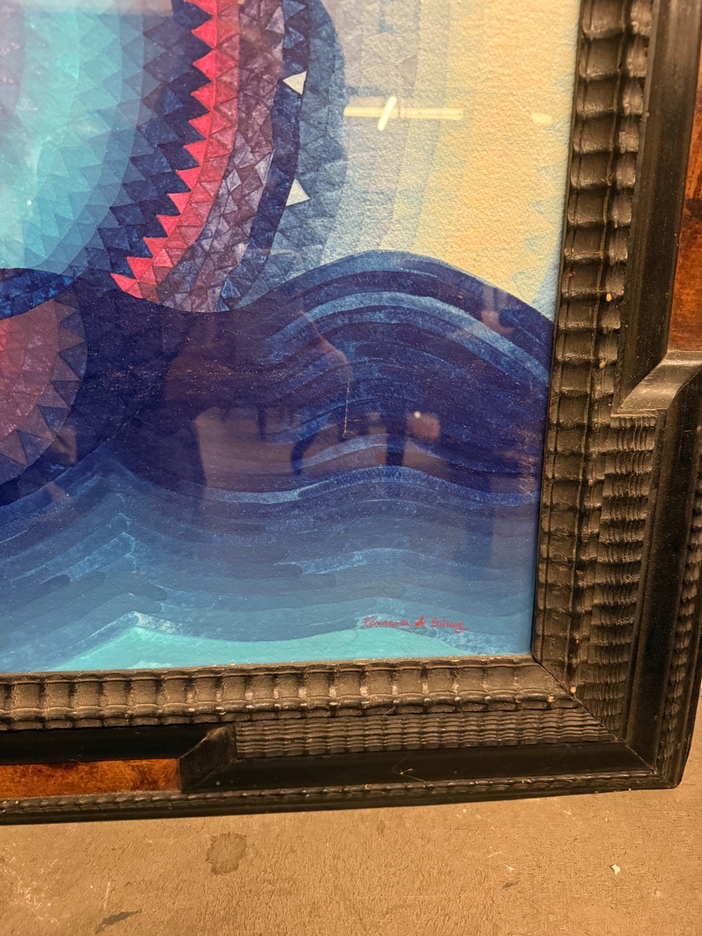 20th-century modern and contemporary art watercolor painting, 99x70 cm, including the frame 126x98 cm