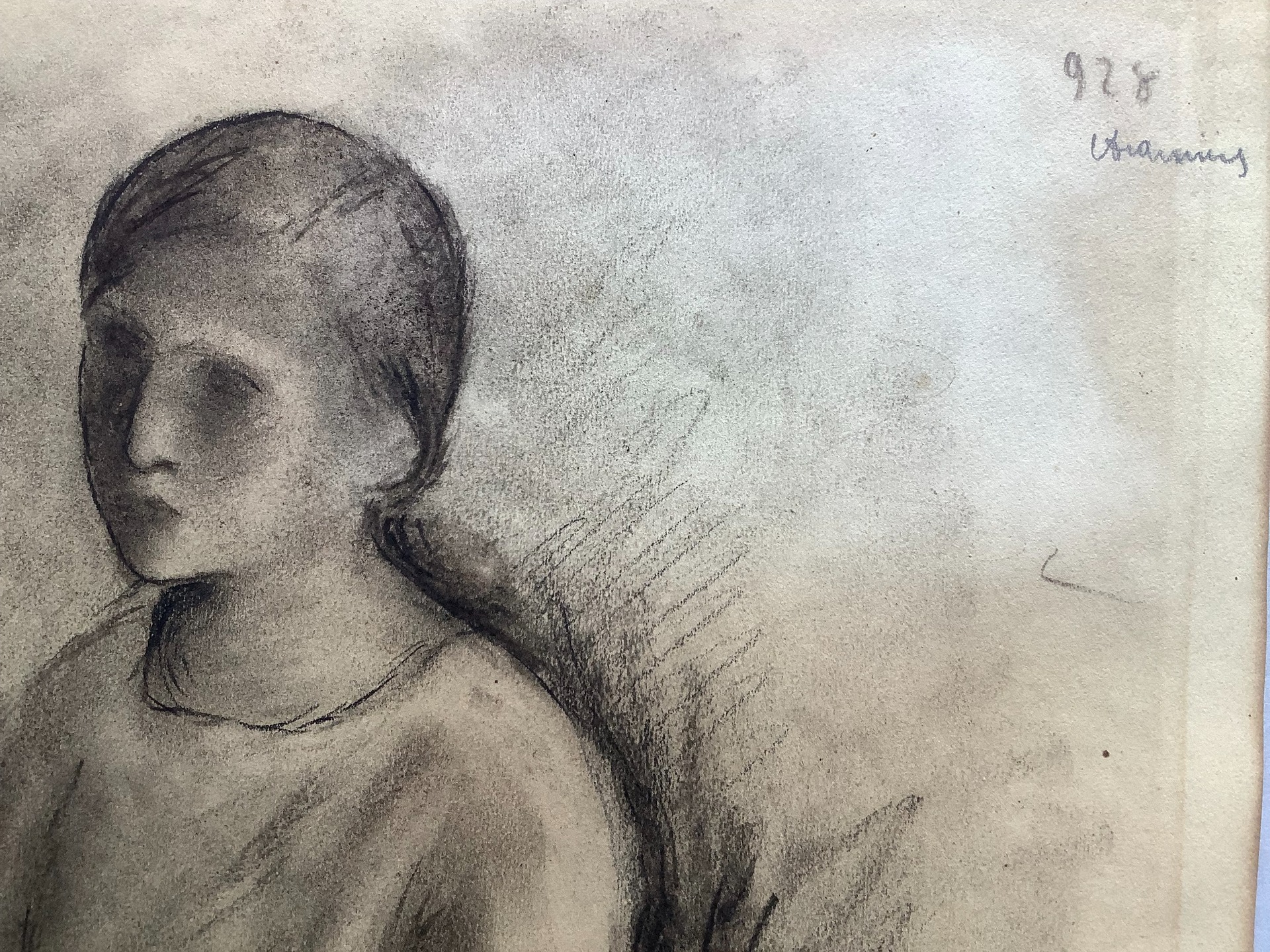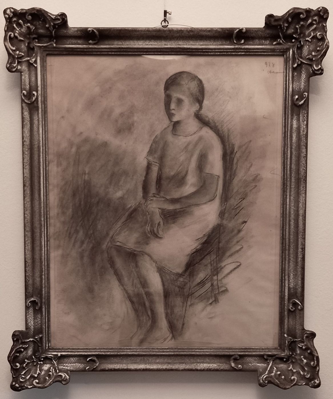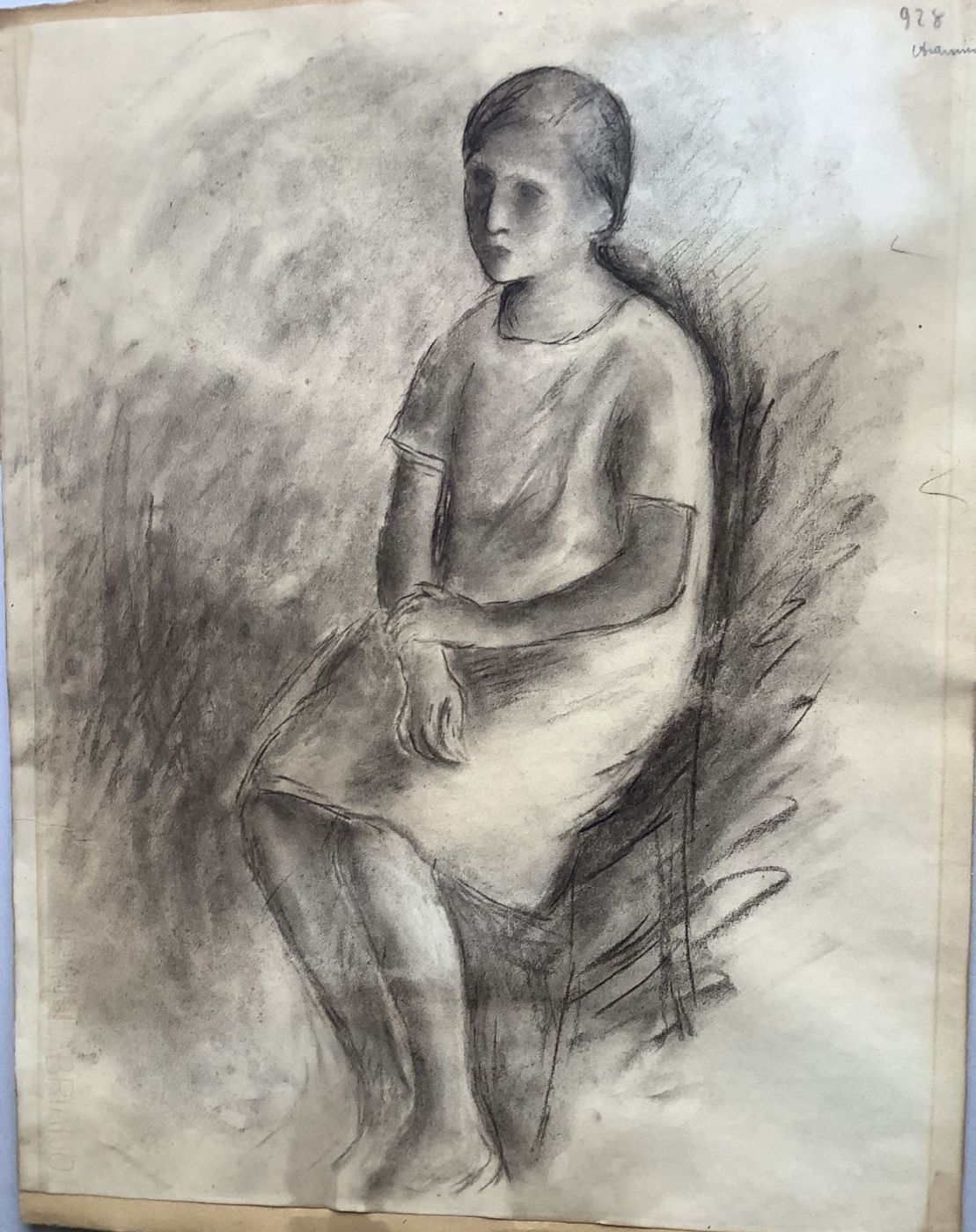 "Seated Girl", charcoal and blending stumps on cardboard cm. 59x48, signed and dated 1928 at the top right; in a contemporary frame.