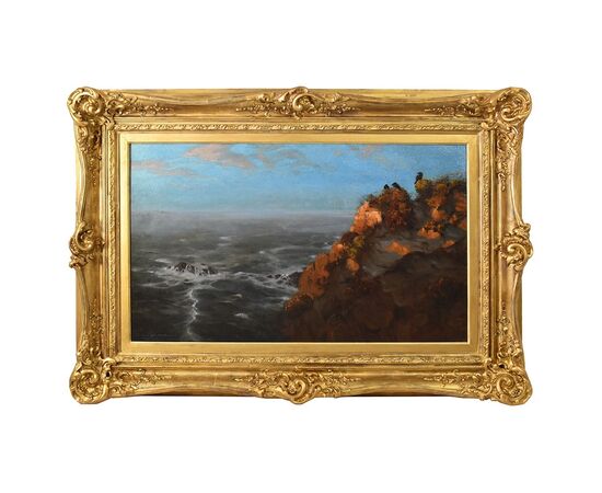 L'opera rappresenta uno scorcio di scoglio con dei corvi e di fronte l'Oceano dipinto con colori caldi e luminosi.