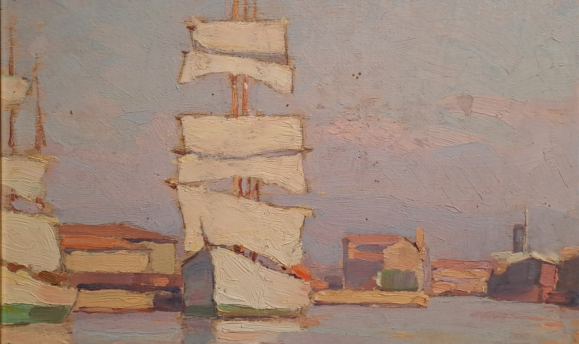 Themes: His style evolved into a painting that favored Labronica themes: seascapes, the port, boats and fishermen. His small-format paintings, such as the one under consideration, are particularly appreciated for their luminous synthesis and energetic but controlled brushstroke.