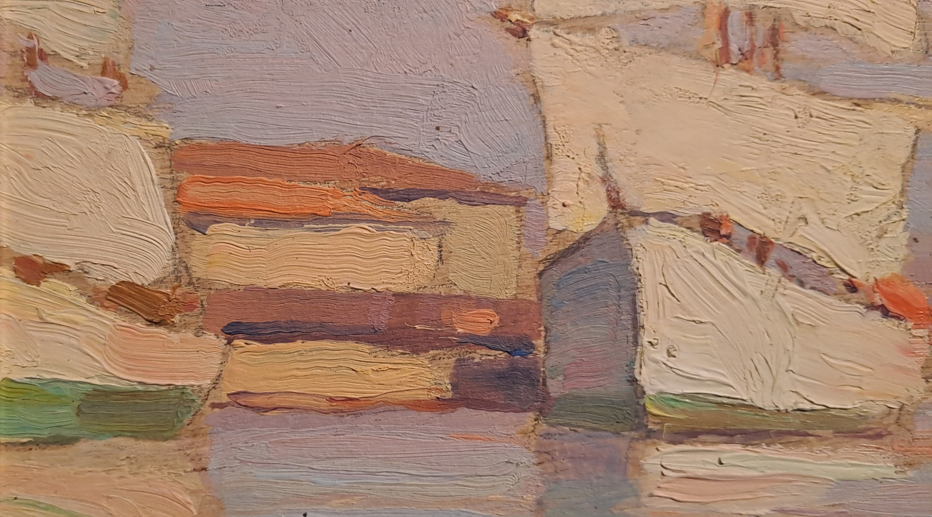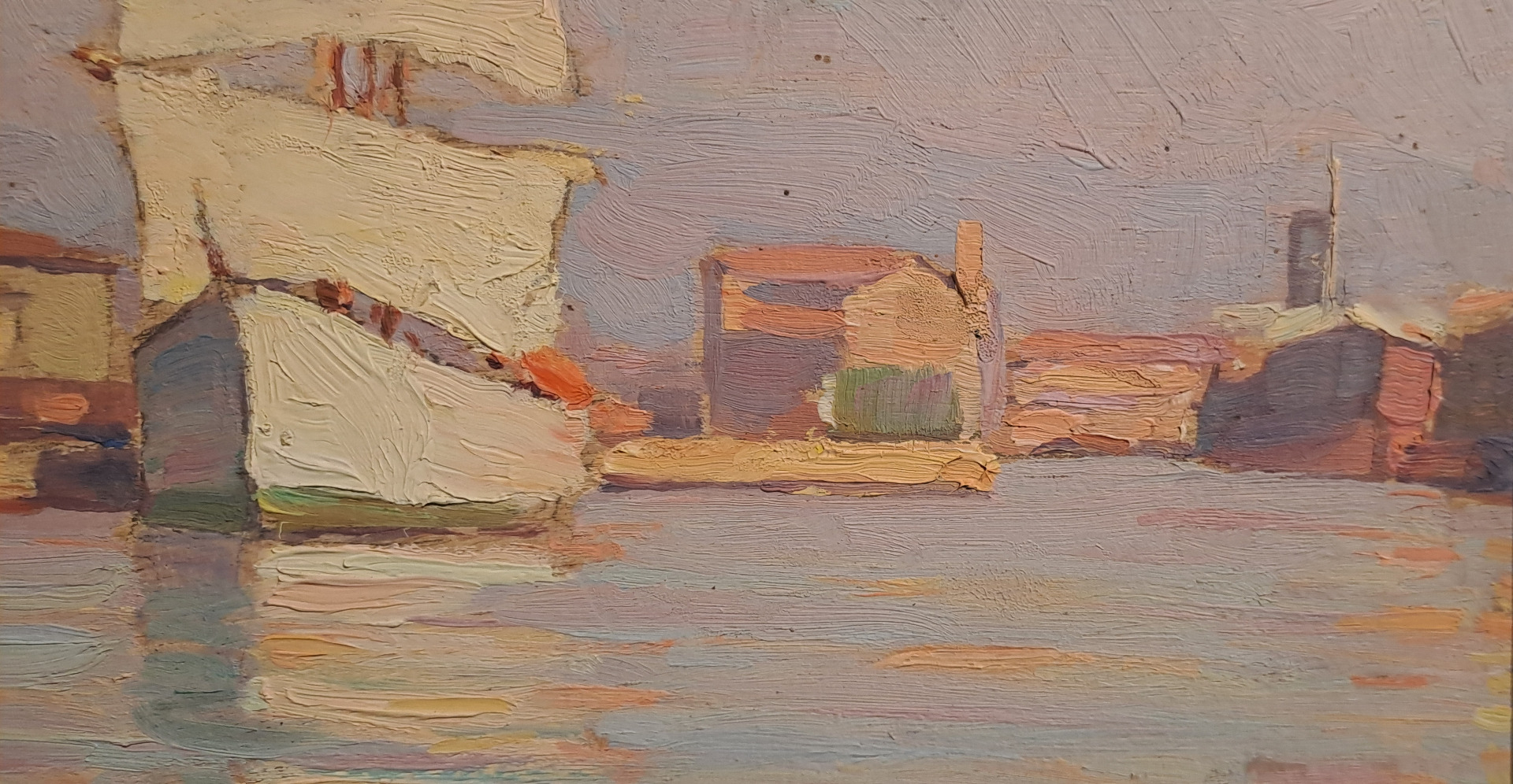 Themes: His style evolved into a painting that favored Labronica themes: seascapes, the port, boats and fishermen. His small-format paintings, such as the one under consideration, are particularly appreciated for their luminous synthesis and energetic but controlled brushstroke.