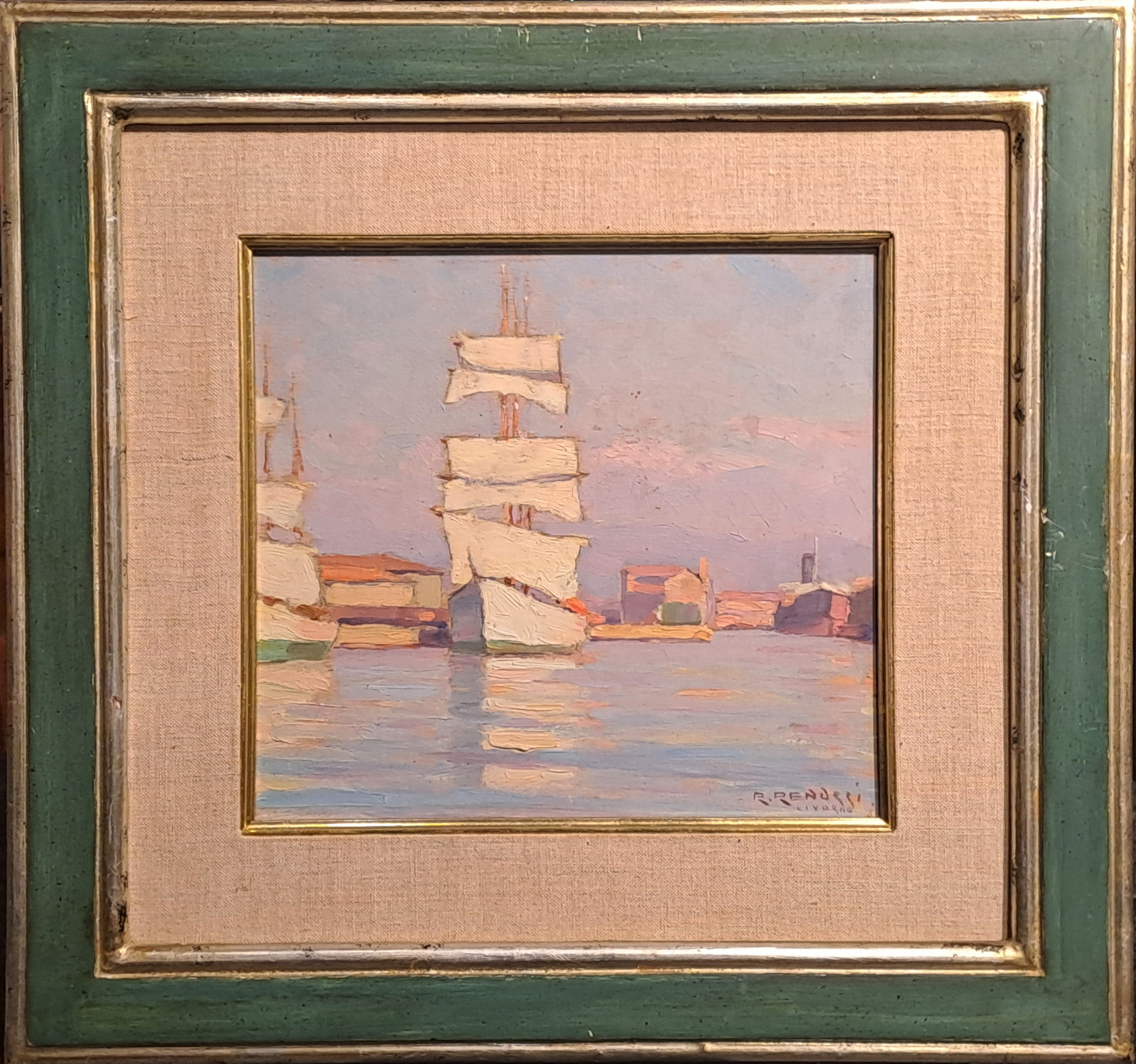Oil on Panel by Renuccio Renucci: "Sailing Ships in Port"