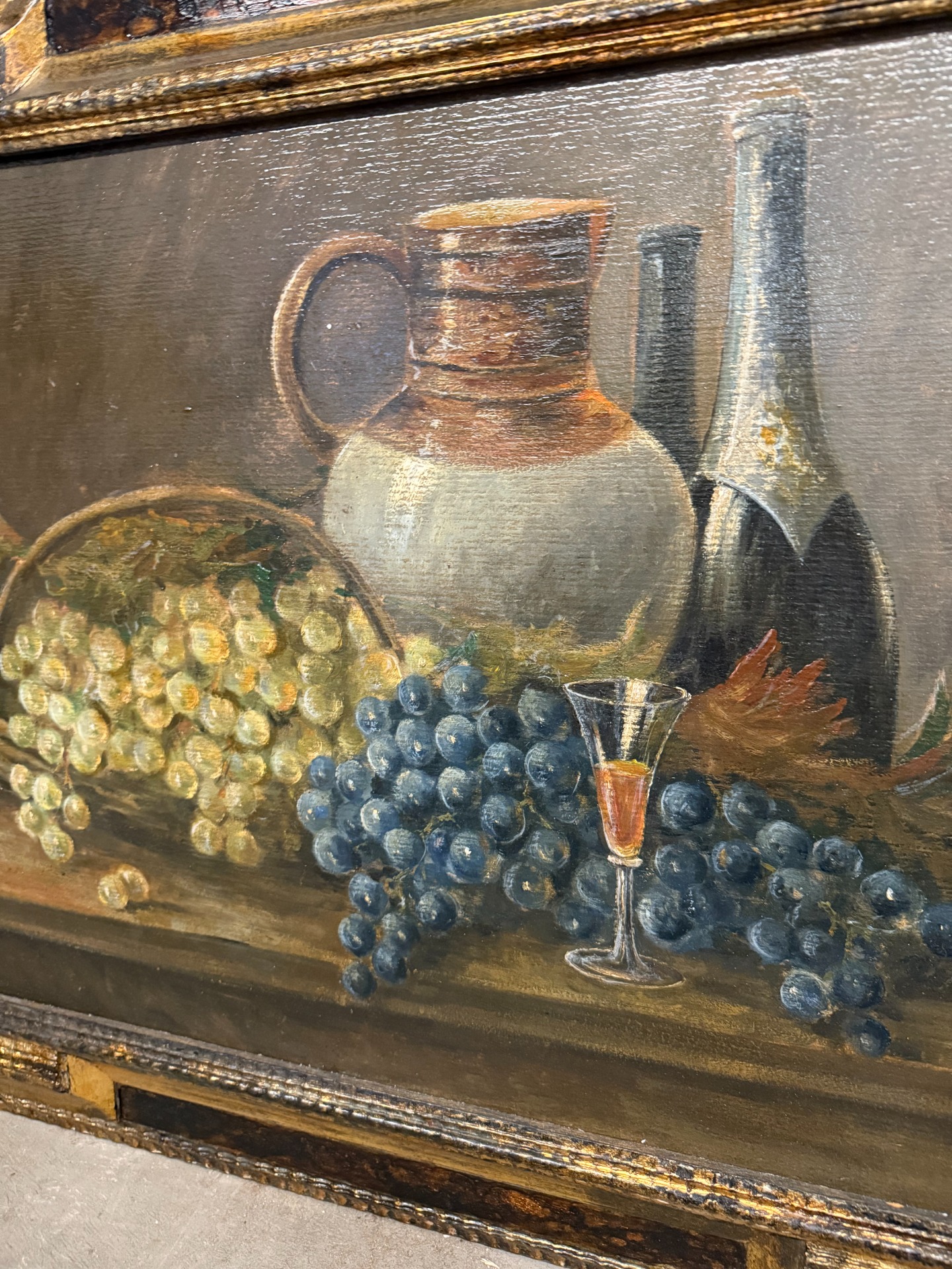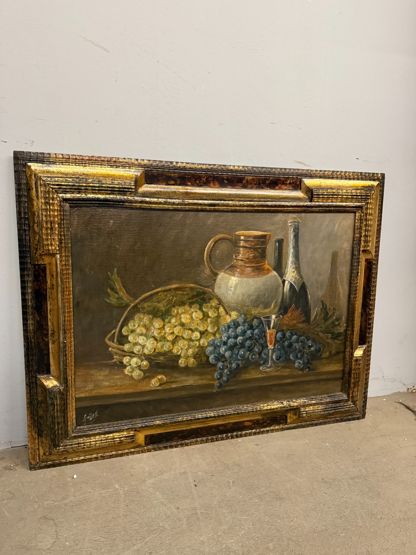 Antique oil painting on cardboard, French school, 1930, 70x90cm. Signed in the lower left corner. Painting only 71x51.50cm. Coeval frame. Does not require any intervention.