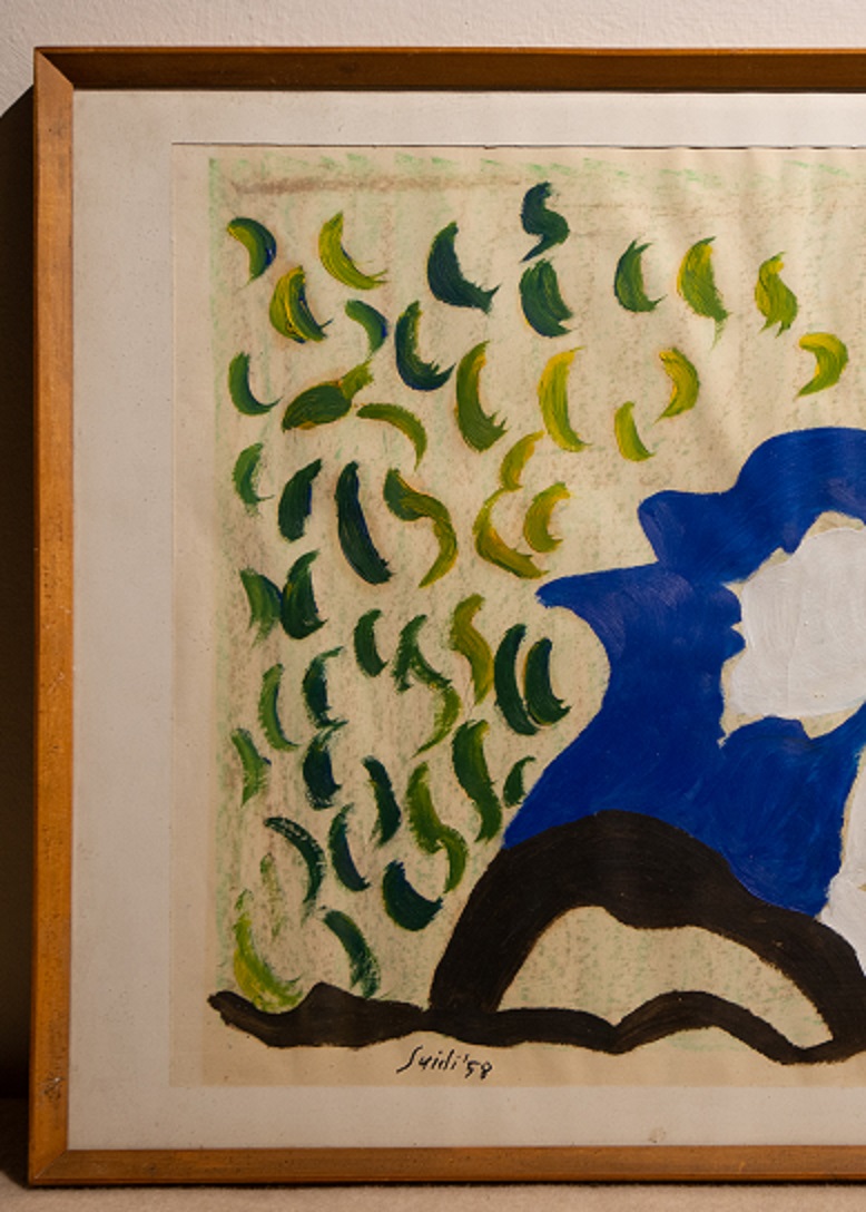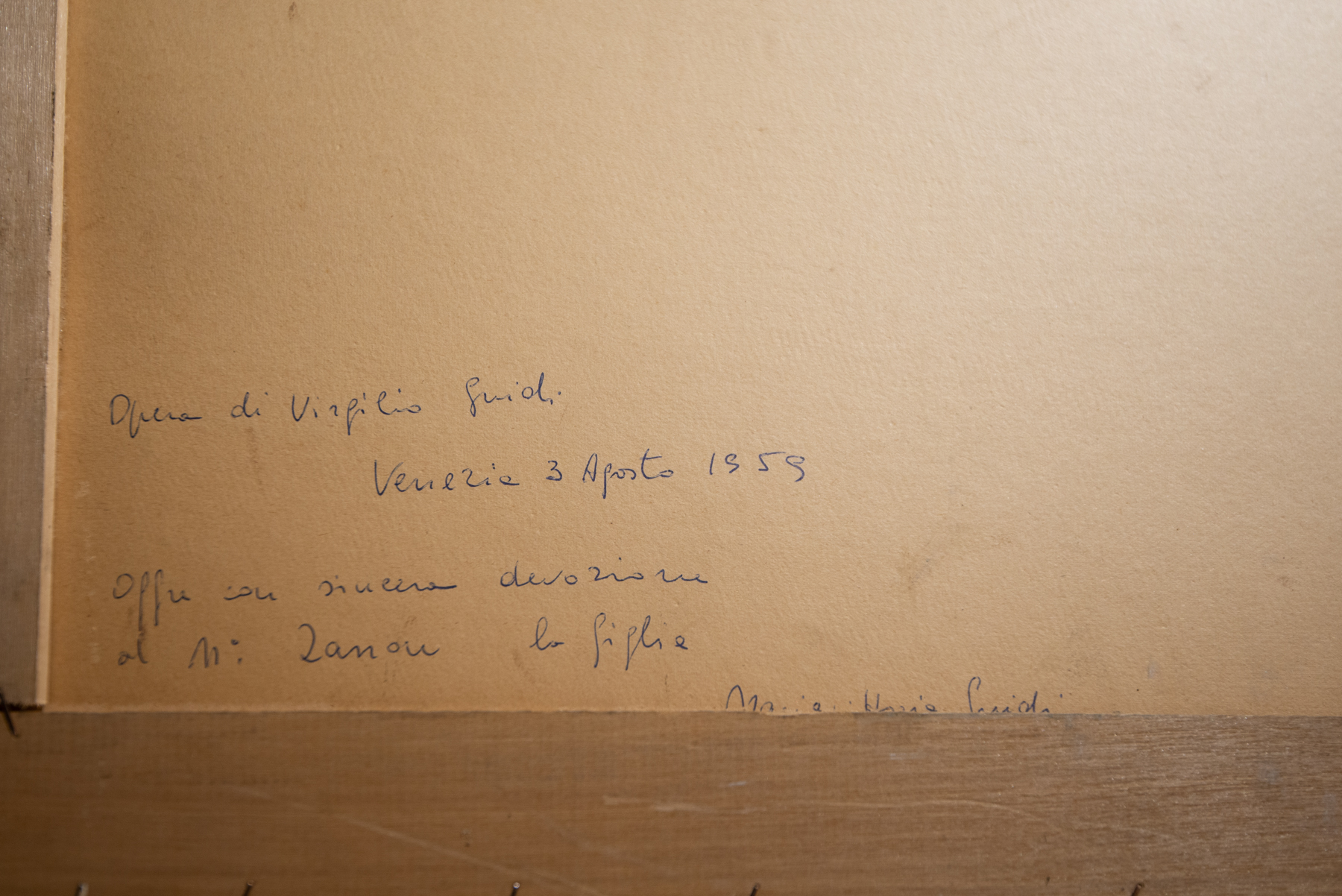 Virgilio Guidi (Rome, April 4, 1891 – Venice, January 7, 1984) painting from 1958, signed and with authentication by his daughter signed on the back.