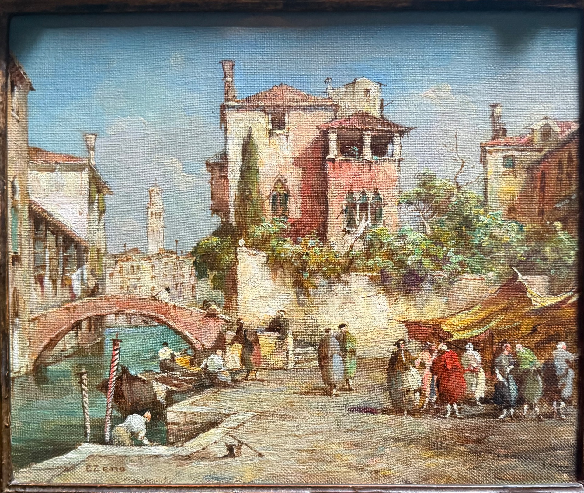 Oil on canvas painting, Venetian view. E. Zeno (Eugenio Bonivento). Chioggia 1880-Milan 1956