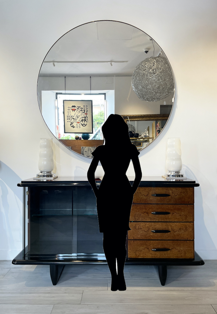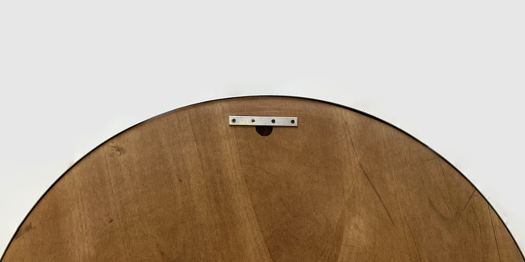 Elegant Vintage mirror with a brass profile and wood backing. It has a convenient steel hook to ensure stability on the wall.