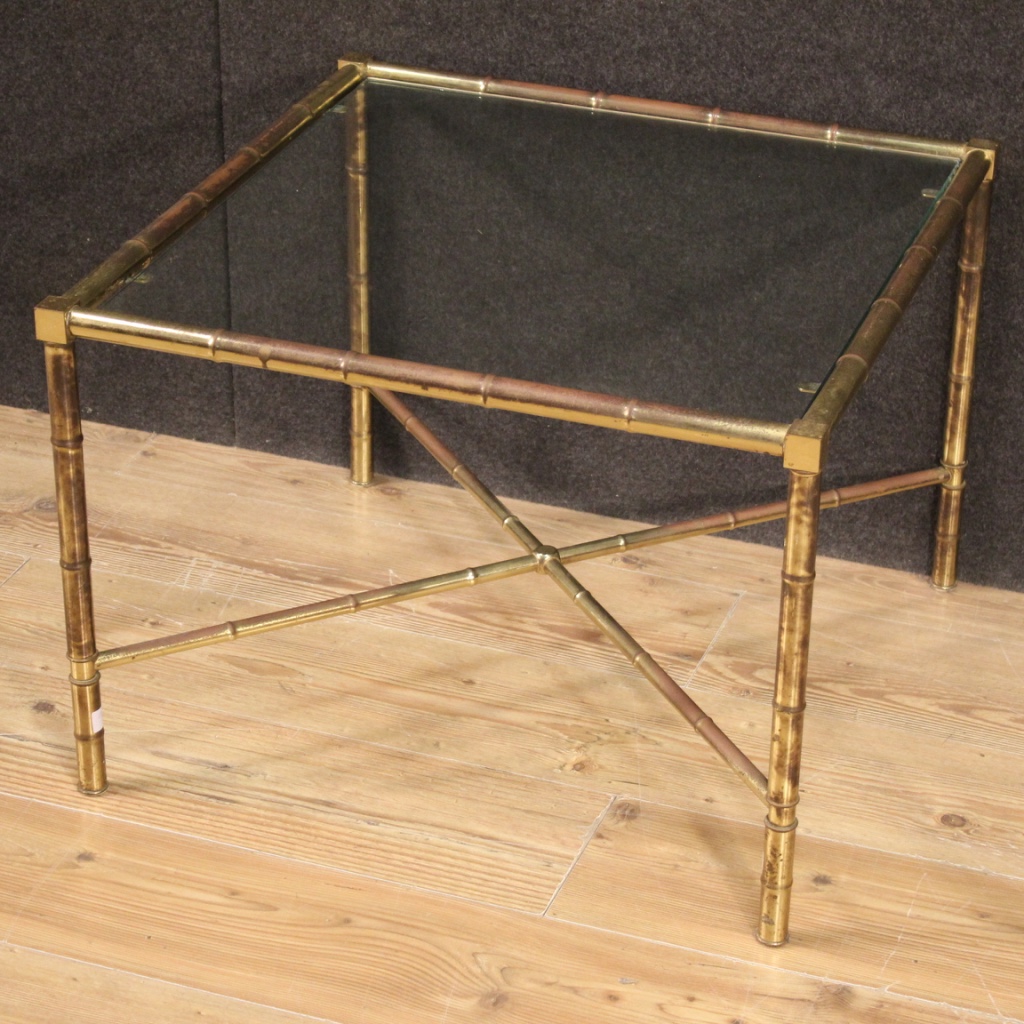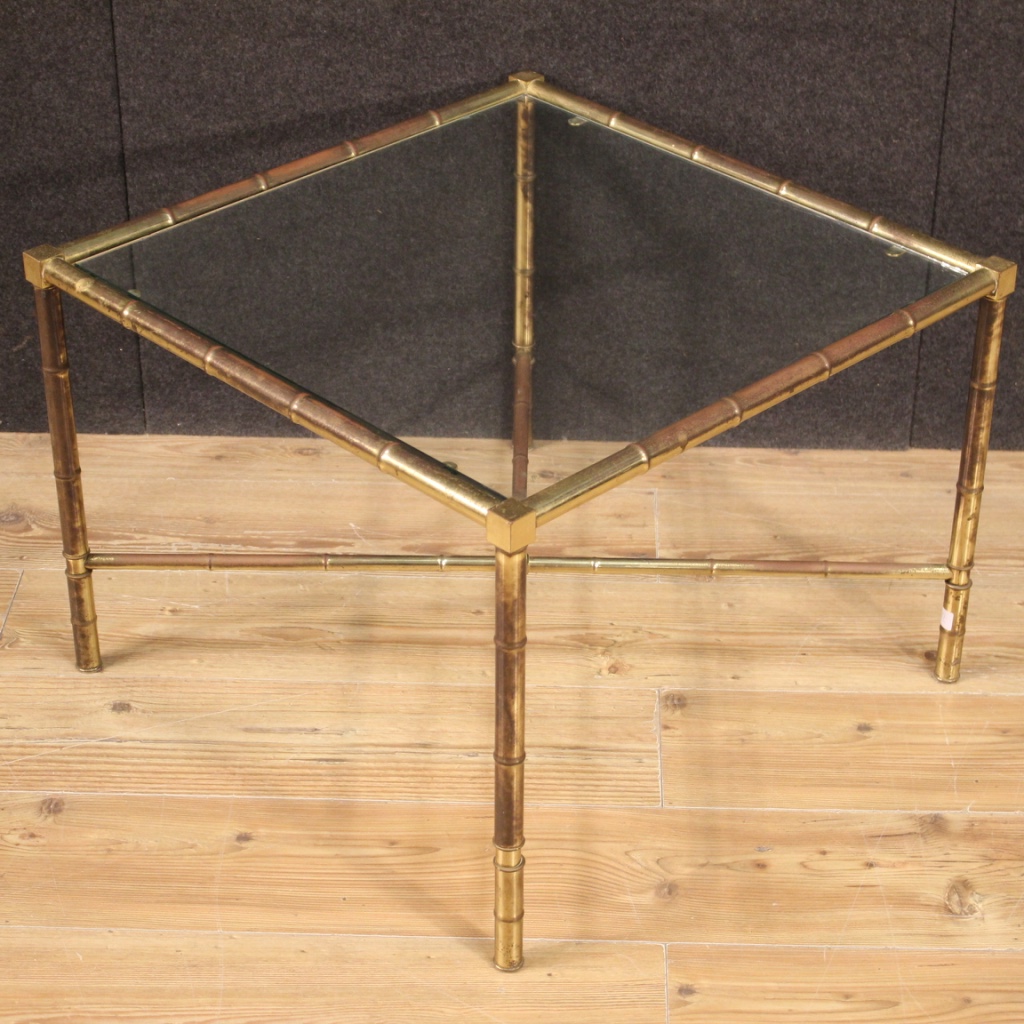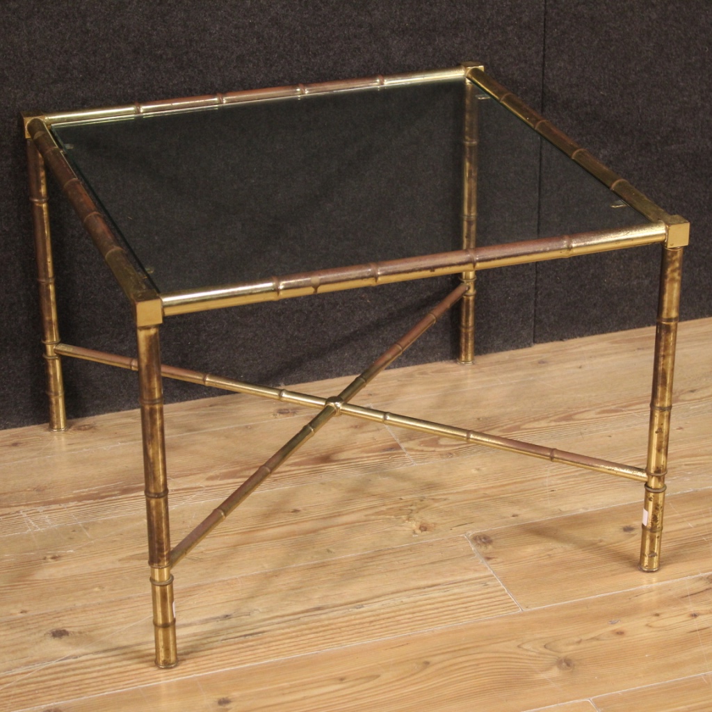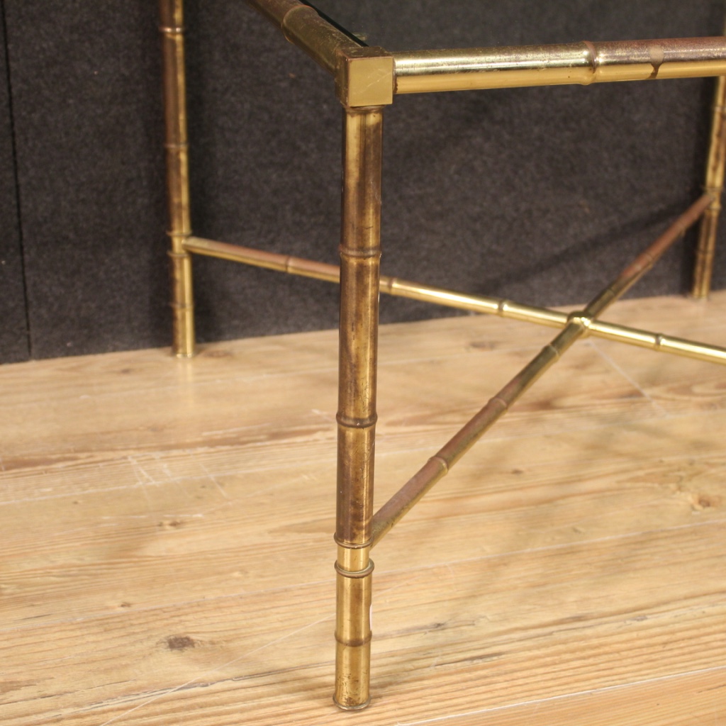French coffee table from the 60s / 70s. Furniture in gilded and chiseled brass (faux bamboo) and glass top with small signs of wear (see picture). Beautifully decorated low coffee table for antique dealers and interior decorators. Brass with various signs of wear (see picture). Glass top of good size and service. Structurally sound, in a fairly conservative state.